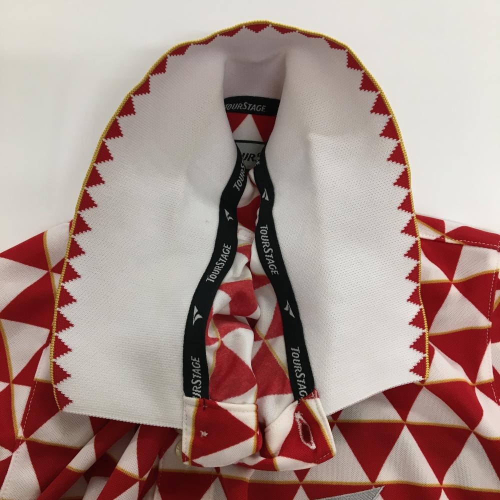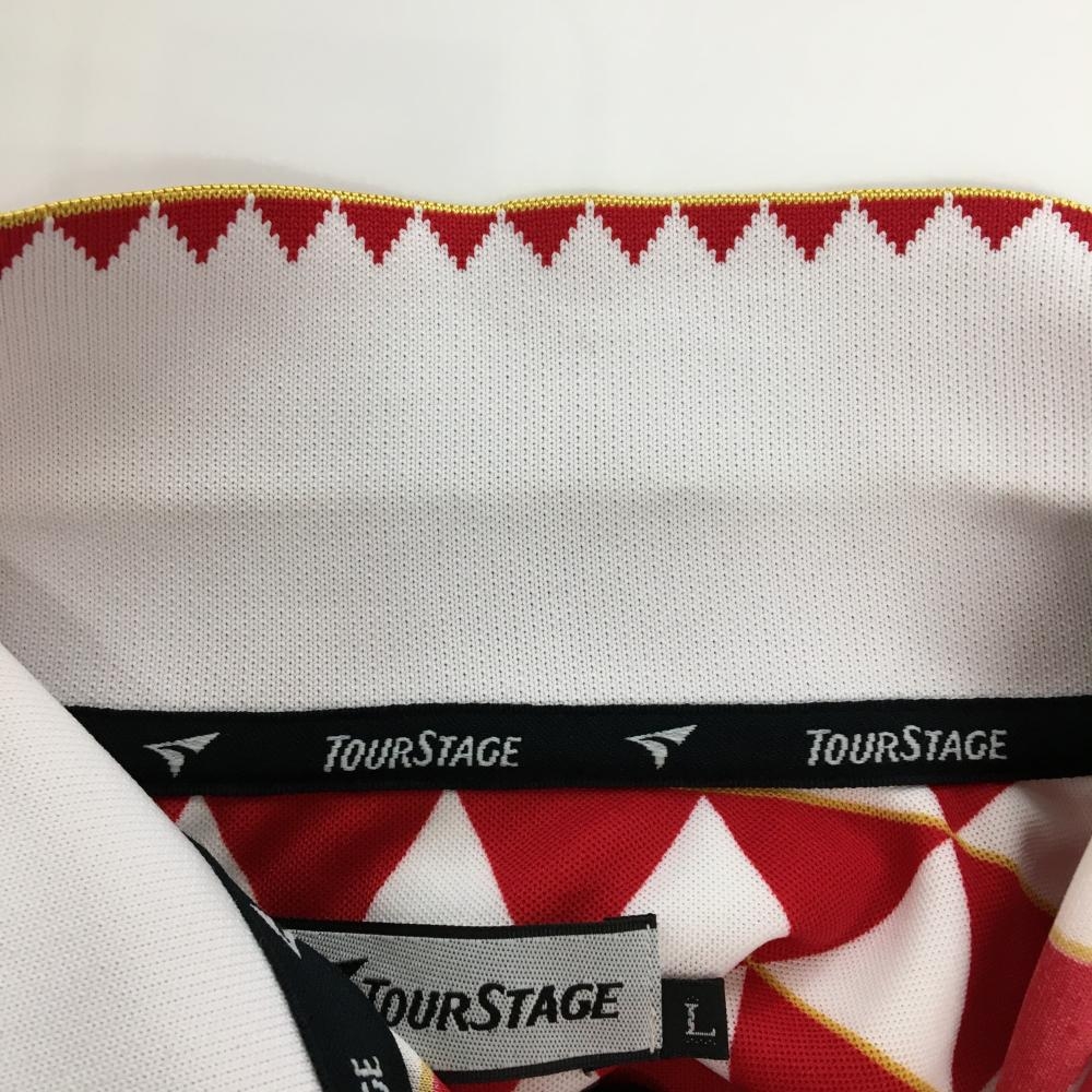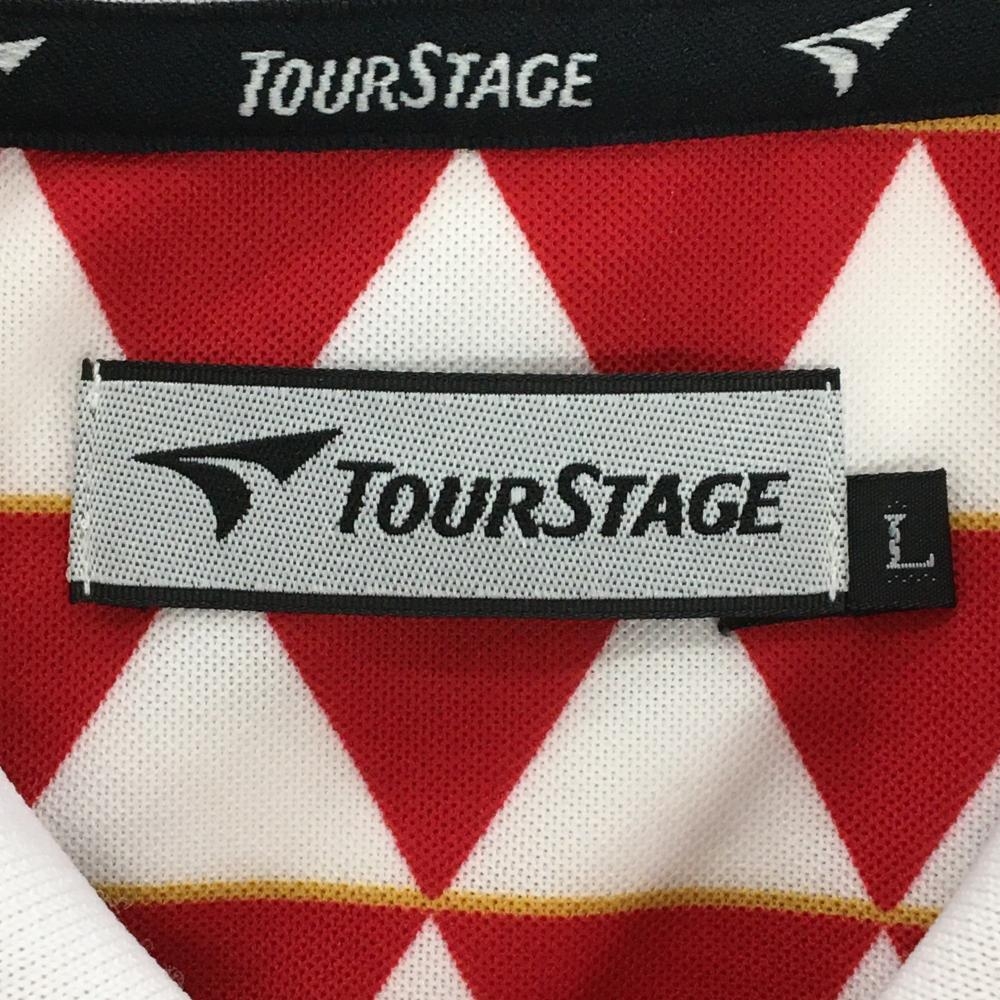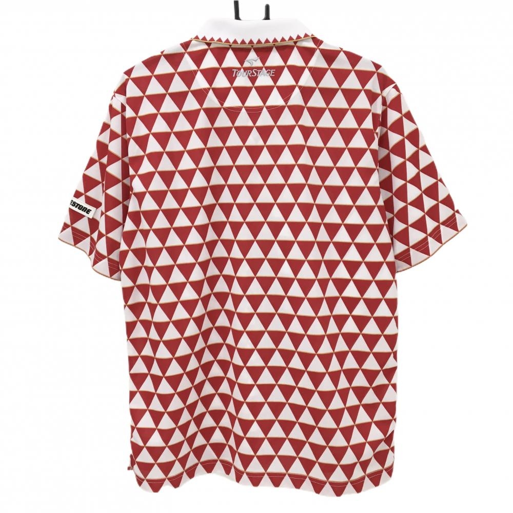 ツアーステージ 半袖ポロシャツ レッド×白 三角総柄 メンズ L ゴルフウェア TOURSTAGE