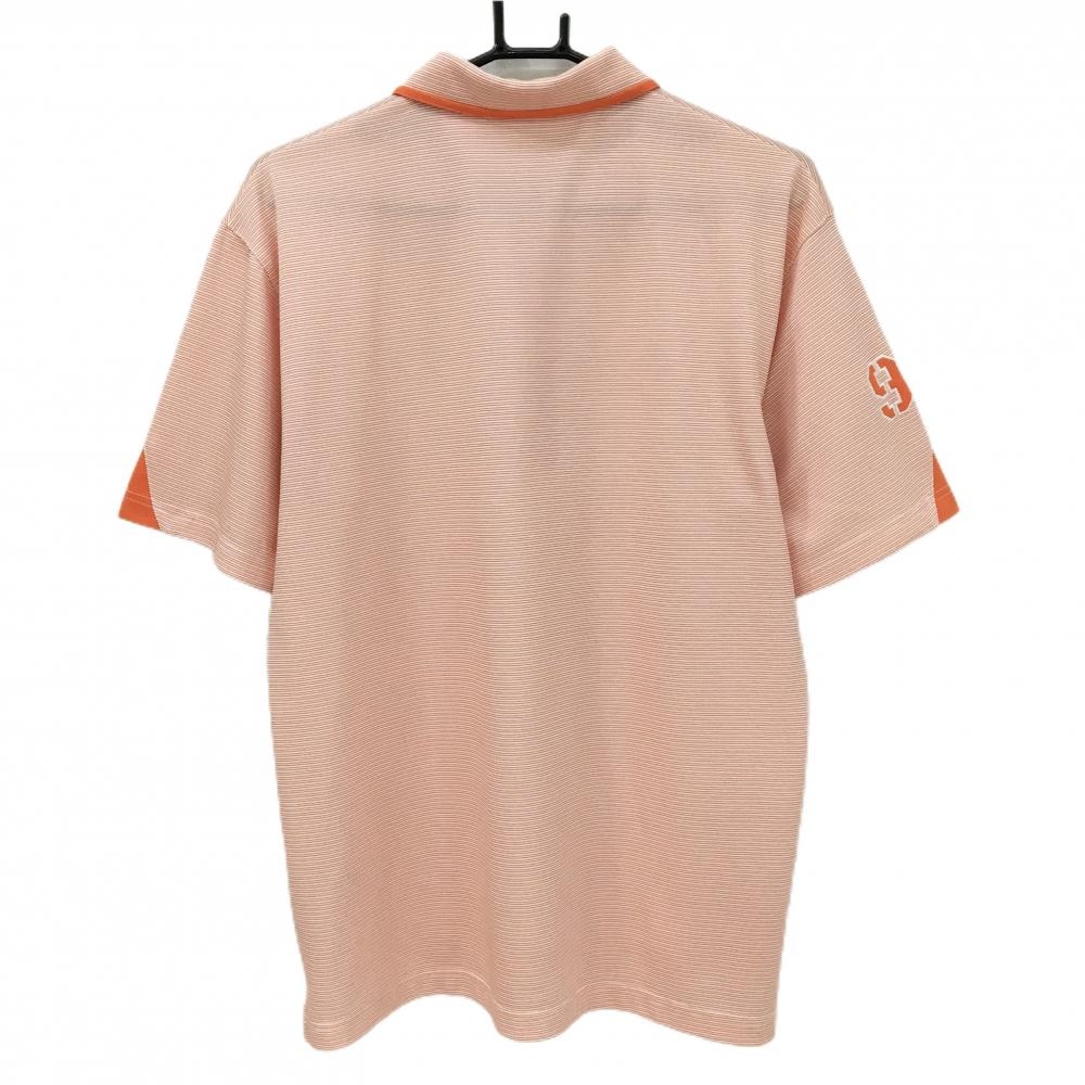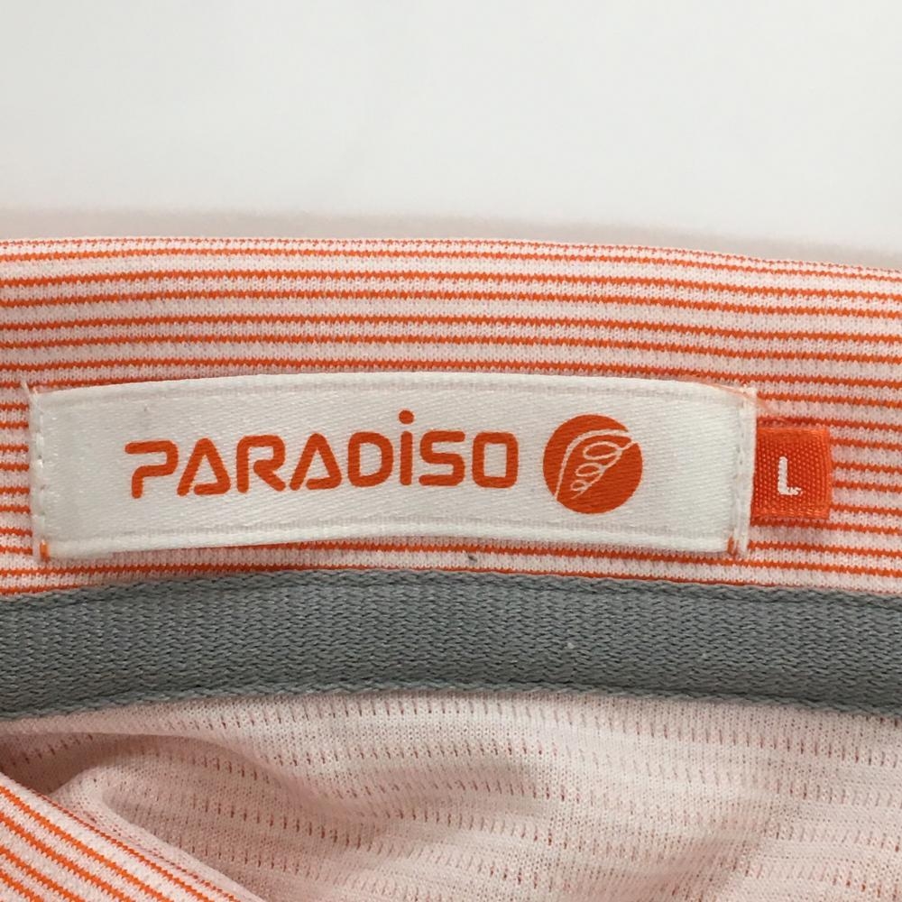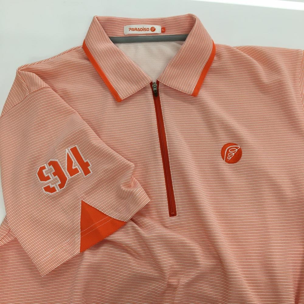 【超美品】パラディーゾ 半袖ポロシャツ オレンジ×白 細ボーダー ハーフジップ メンズ L ゴルフウェア Paradiso