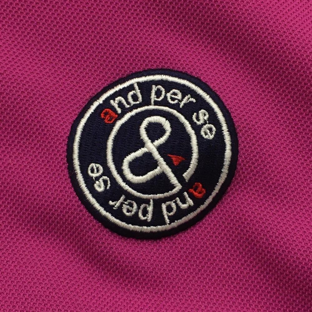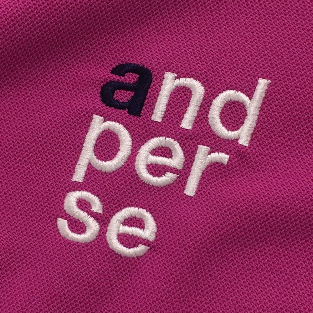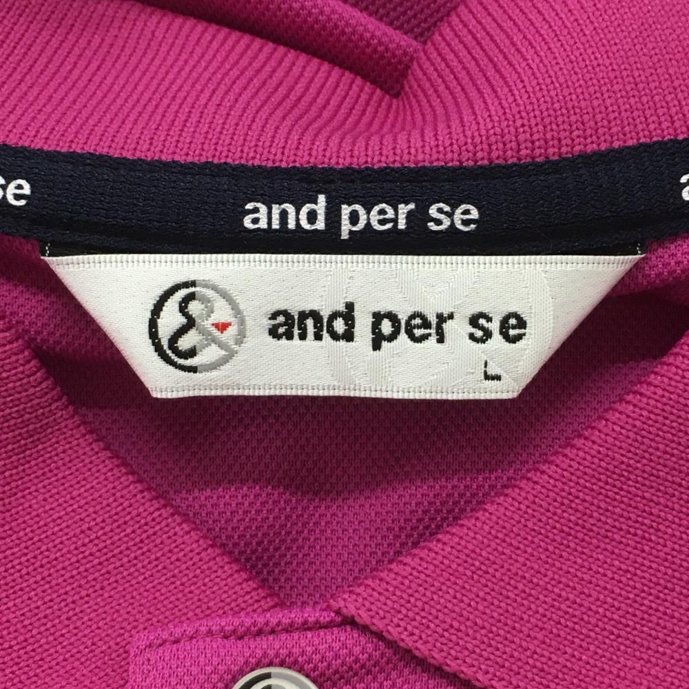 【超美品】アンパスィ 半袖ポロシャツ パープル ロゴ刺しゅう メンズ L ゴルフウェア and per se