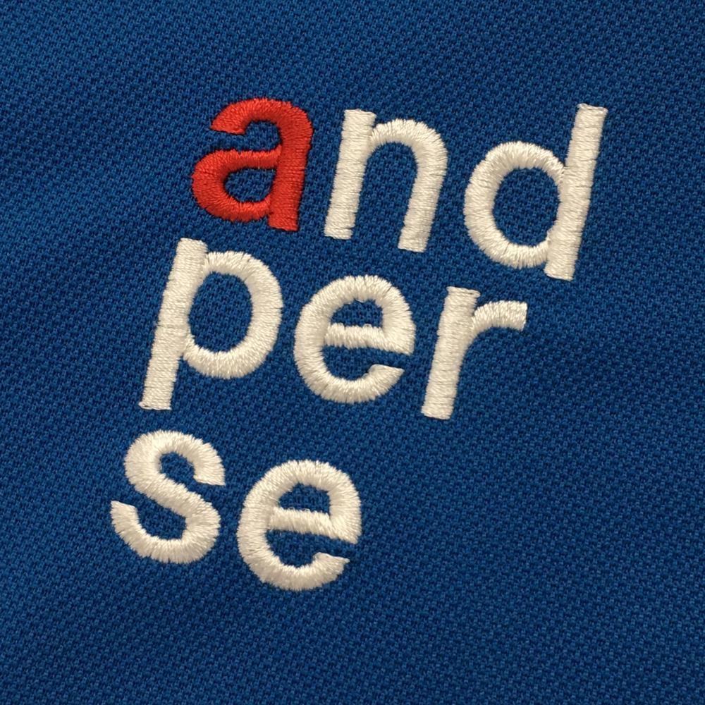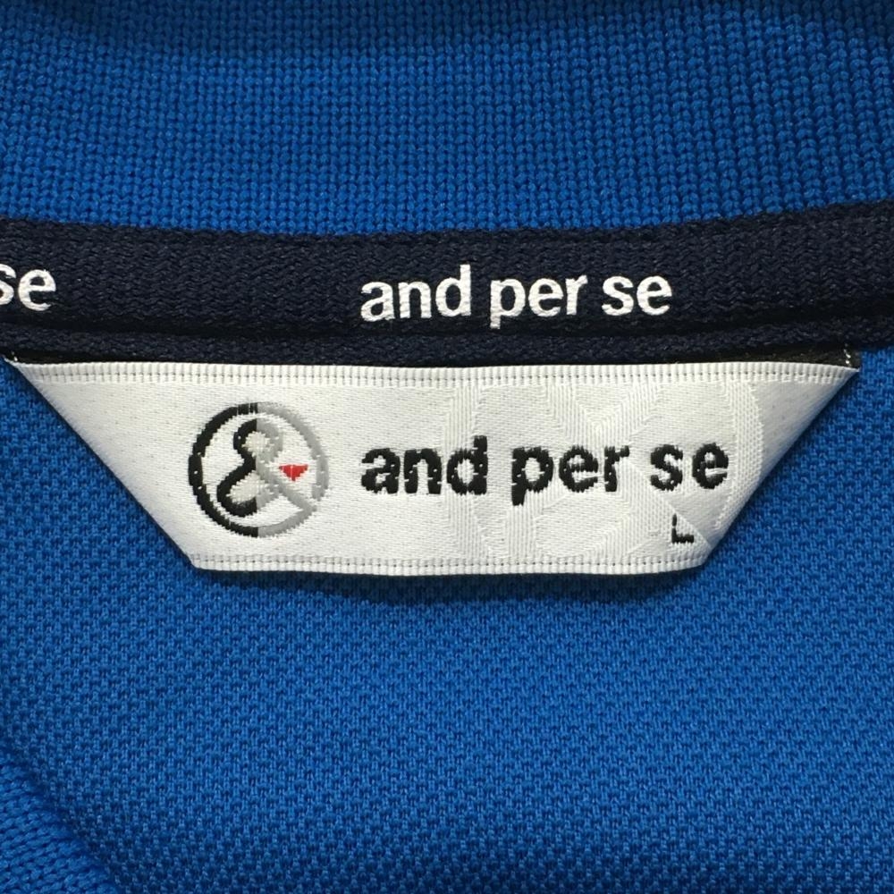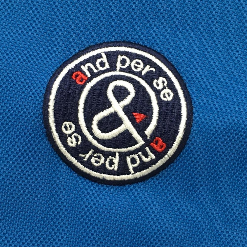 【美品】アンパスィ 半袖ポロシャツ ブルー系 ロゴ刺しゅう メンズ L ゴルフウェア and per se