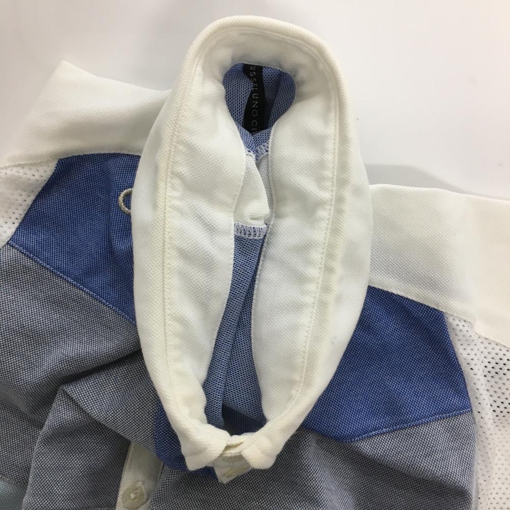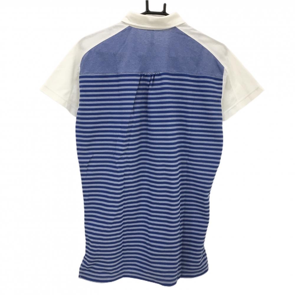 ラッセルノ 半袖ポロシャツ ブルー×ライトブルー×白 背面ボーダー ルチャ 袖下メッシュ メンズ 4(M) ゴルフウェア RUSSELUNO