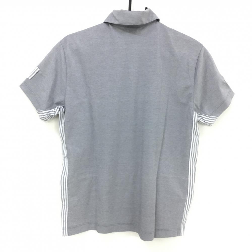 【超美品】ゾーイ 半袖ポロシャツ グレー系×白 サイドストライプ ロゴ刺しゅう メンズ 1(S) ゴルフウェア ZOY