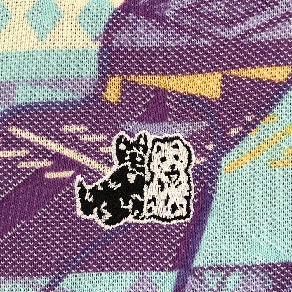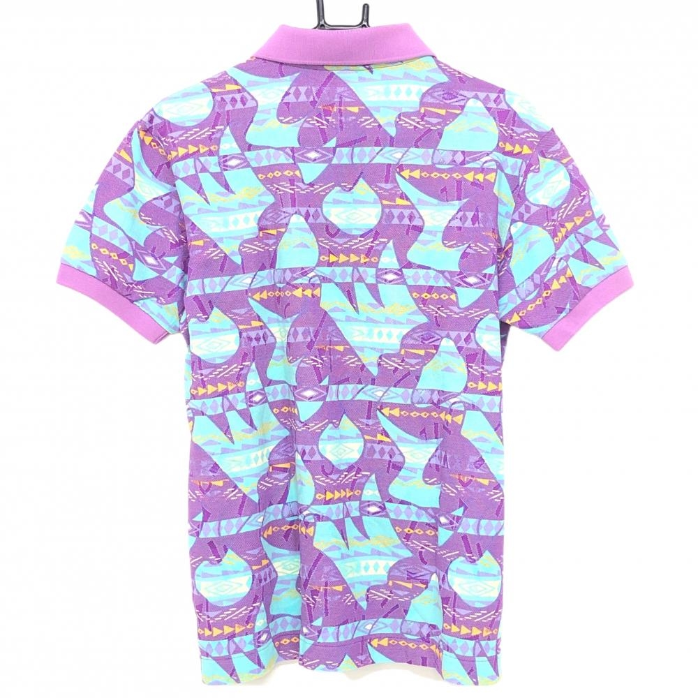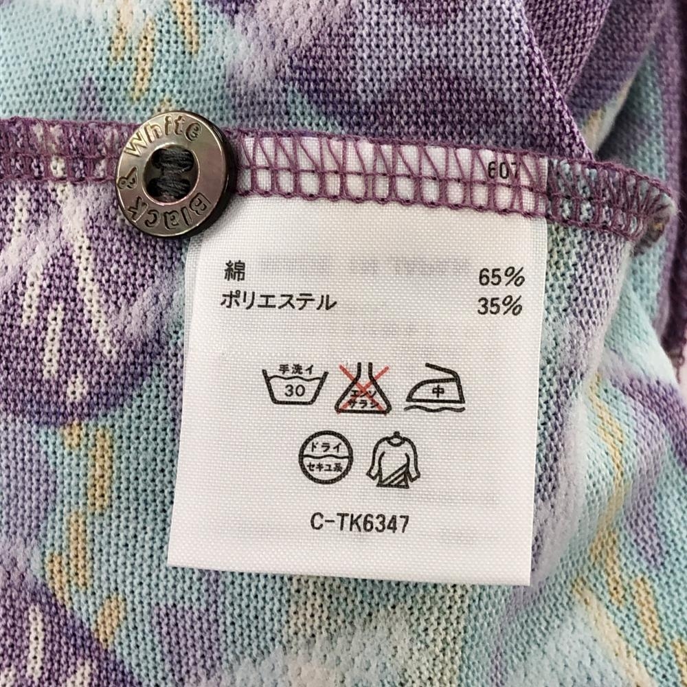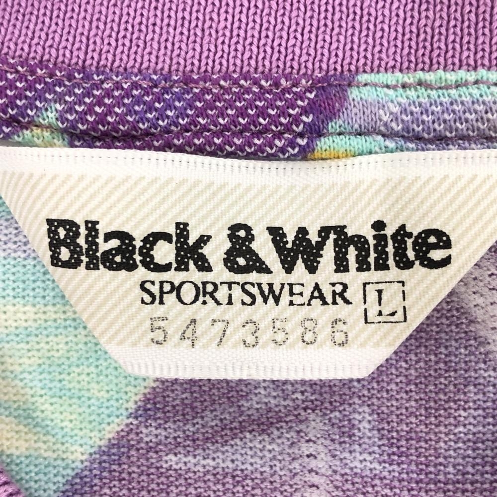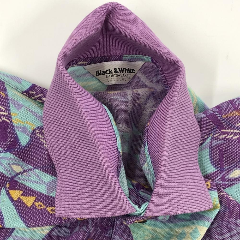 ブラックアンドホワイト 半袖ポロシャツ パープル×ライトブルー 総柄 メンズ L ゴルフウェア Black&White