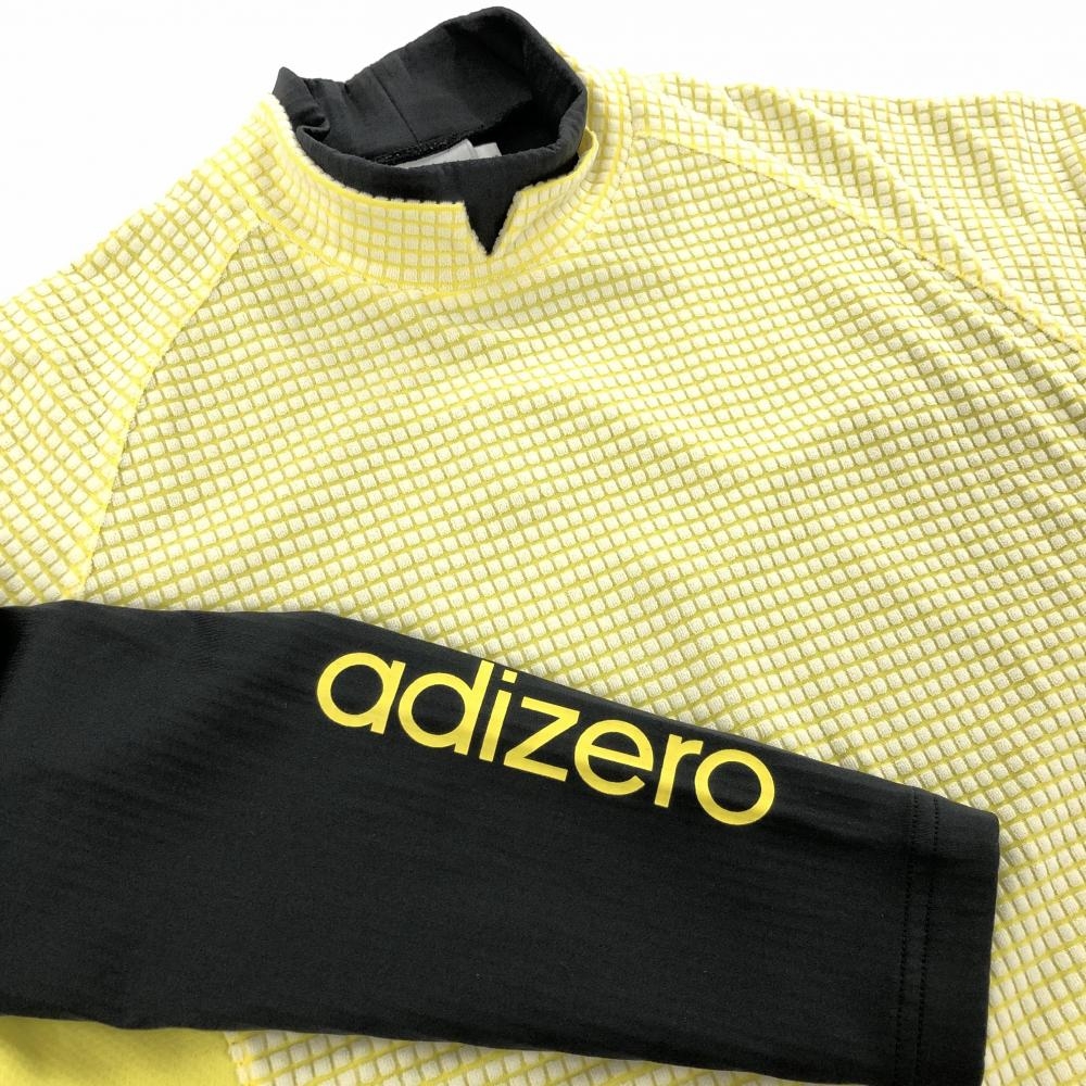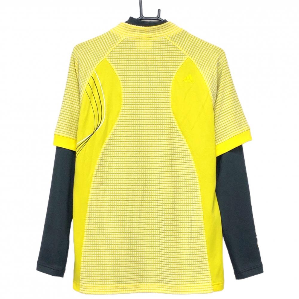 【美品】アディダス インナー付半袖ハイネックシャツ イエロー×黒 凹凸生地 3WAY メンズ L/G ゴルフウェア adidas