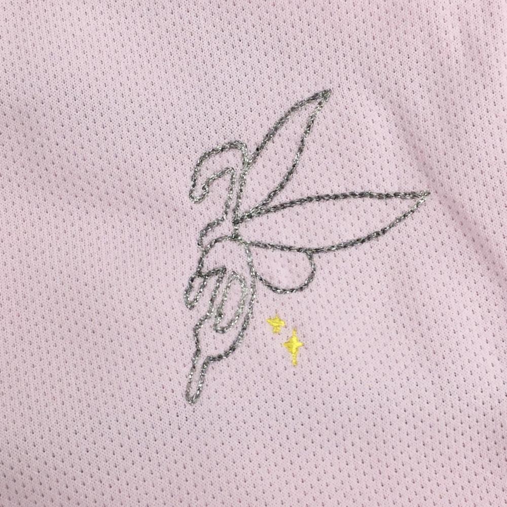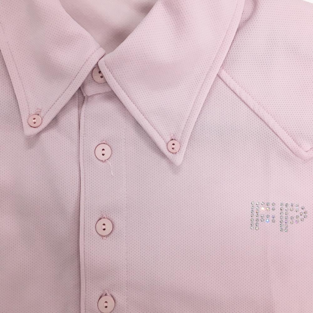 【超美品】フェアリーパウダー 半袖ポロシャツ ピンク ボタンダウン ラインストーンロゴ メンズ M ゴルフウェア FAIRY POWDER