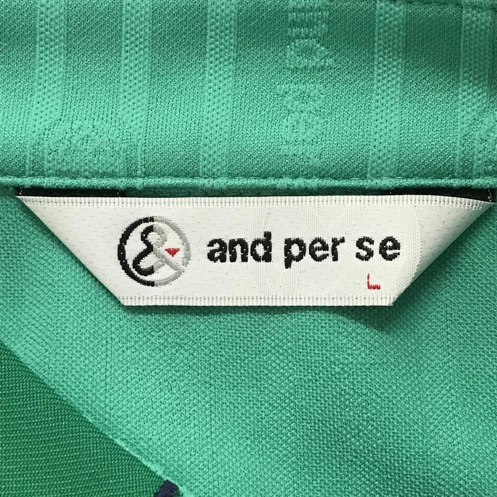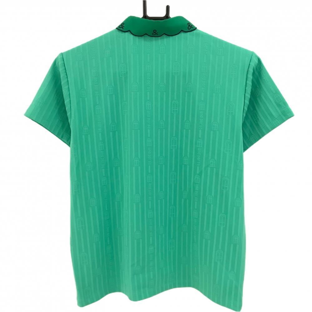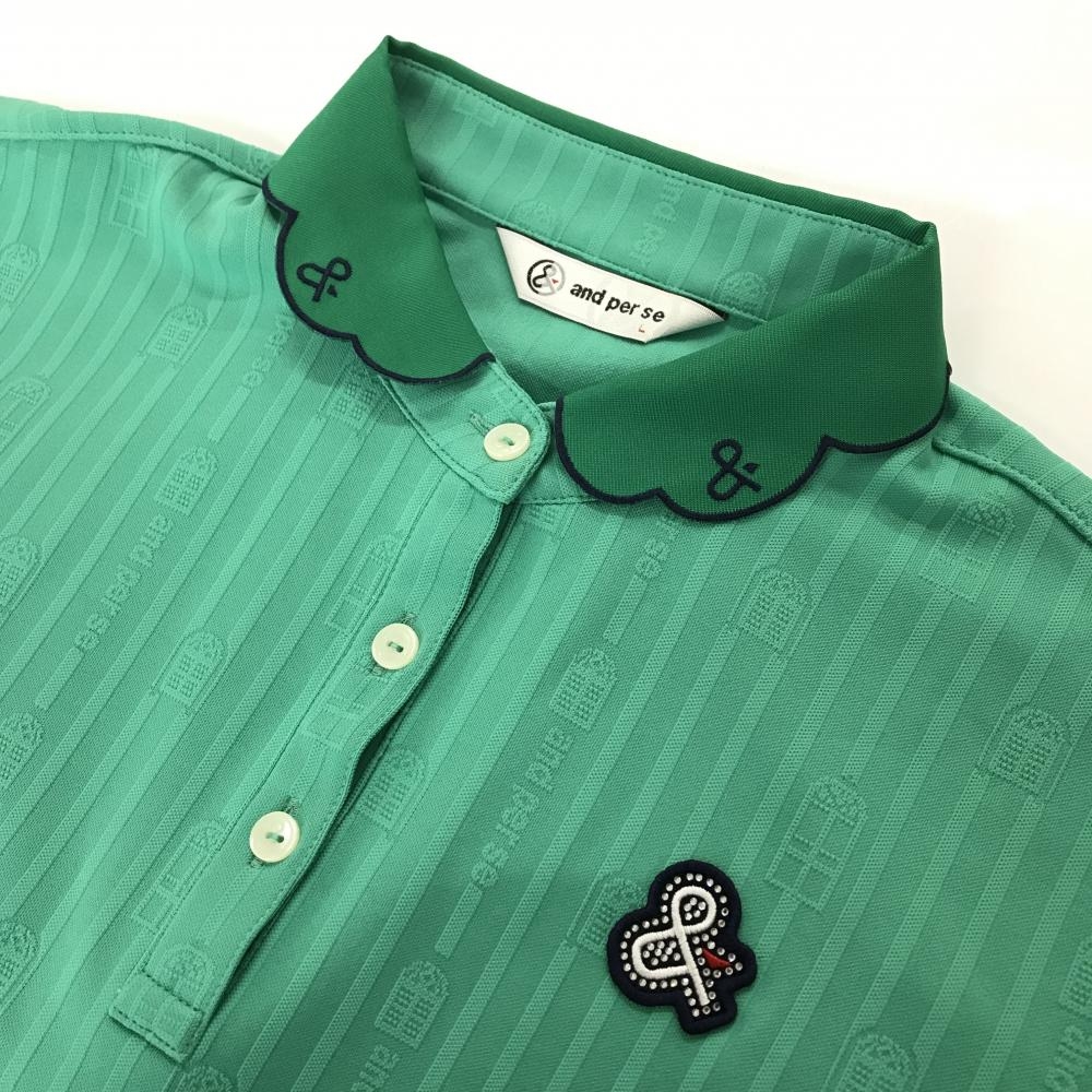 【超美品】アンパスィ 半袖ポロシャツ グリーン ストライプ ロゴ ワッペン レディース L ゴルフウェア and per se