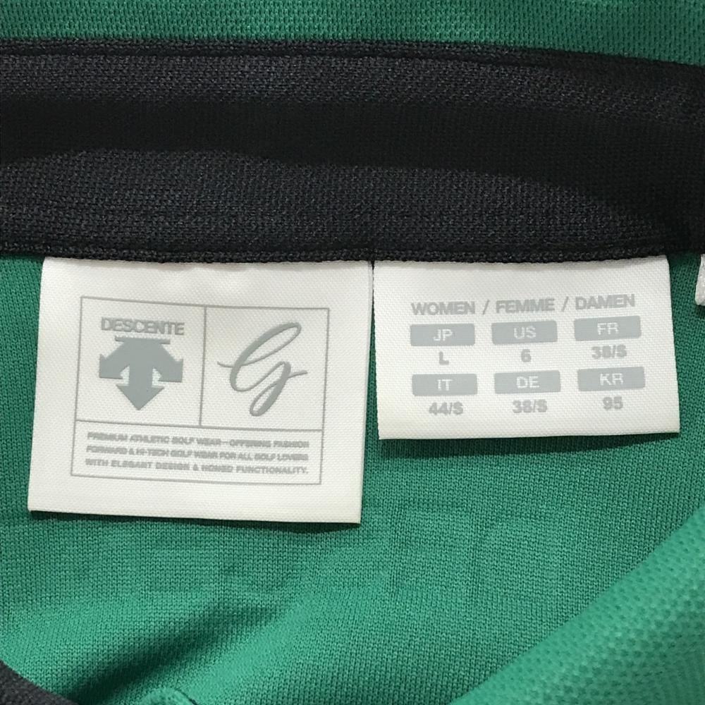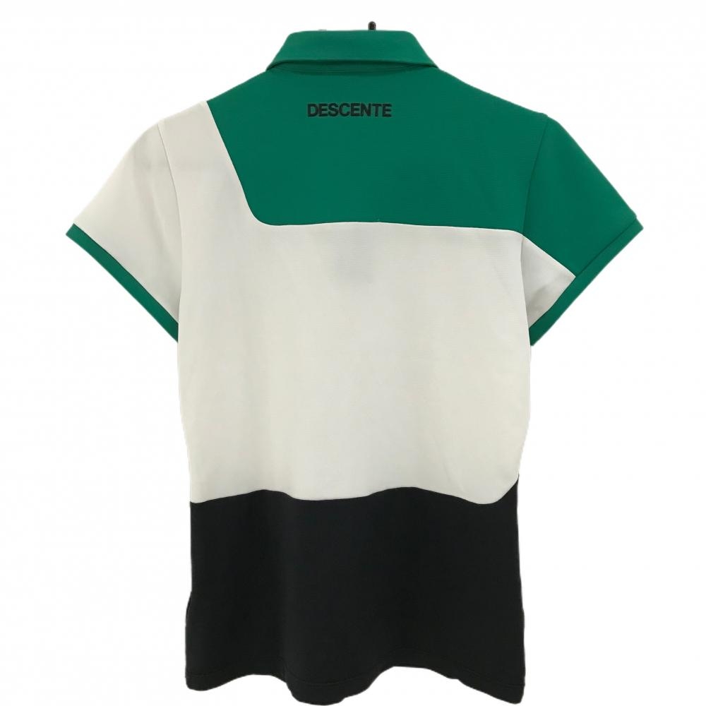 【美品】デサントゴルフ 半袖ポロシャツ グリーン×白×黒 3トーンカラー 中田英寿 レディース L ゴルフウェア DESCENTE