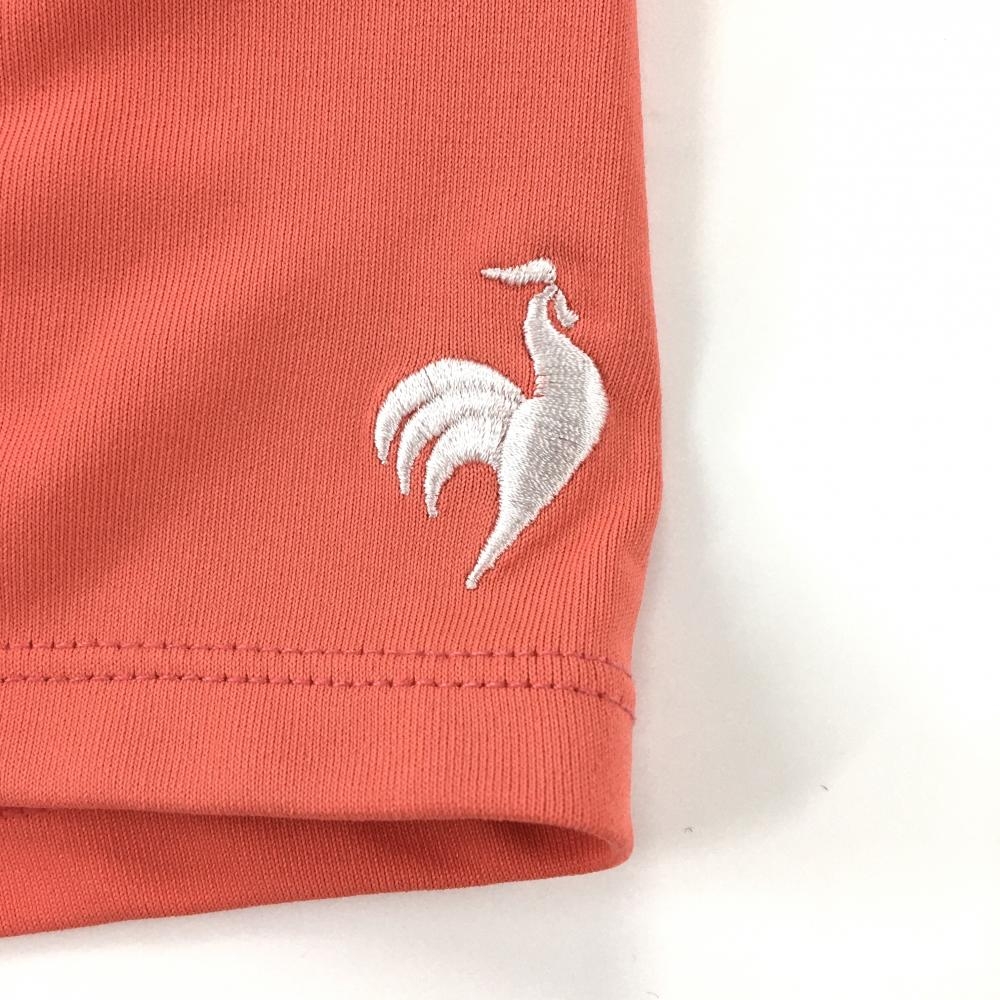 【超美品】ルコックゴルフ 半袖ハイネックシャツ サーモンピンク系×ブルー フロントロゴ レディース M ゴルフウェア le coq sportif