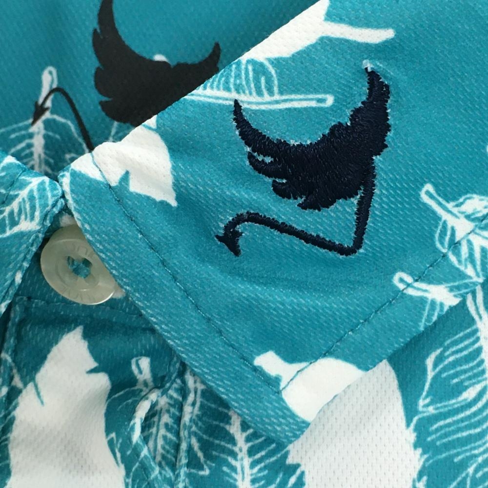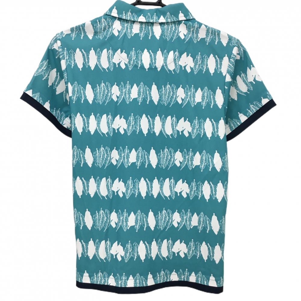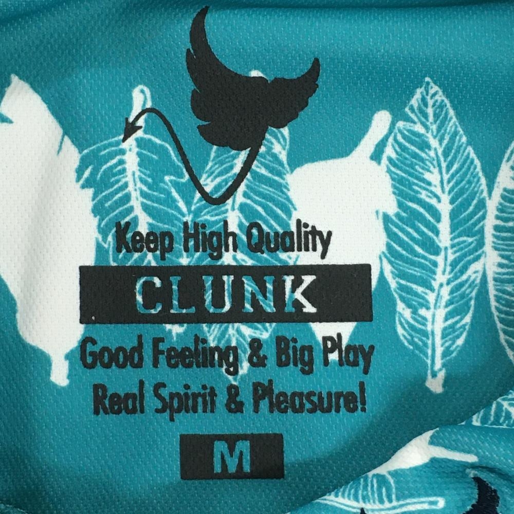 【超美品】クランク 半袖ポロシャツ ライトブルー×白 リーフ柄 レディース M ゴルフウェア CLUNK