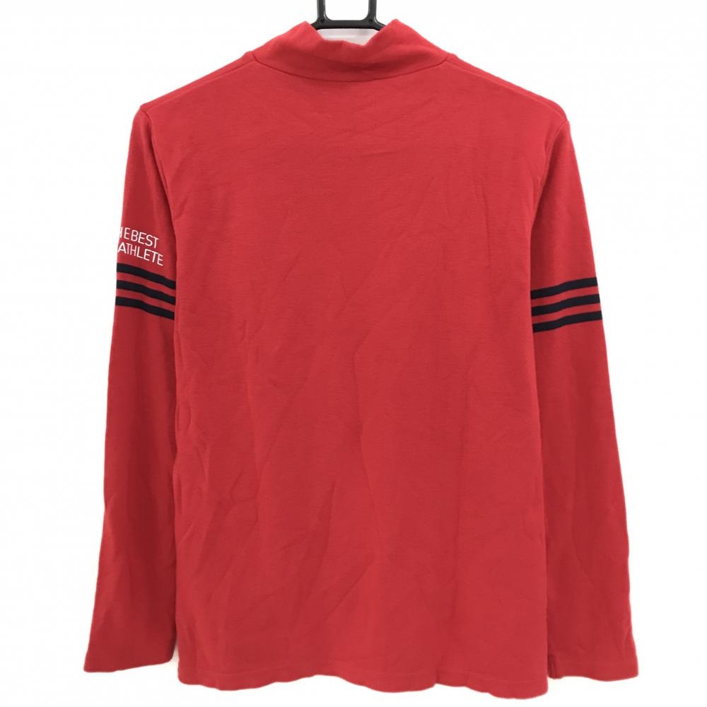 アディダス 長袖ハイネックシャツ レッド 袖3ライン アクリル混 レディース OT/XG ゴルフウェア adidas
