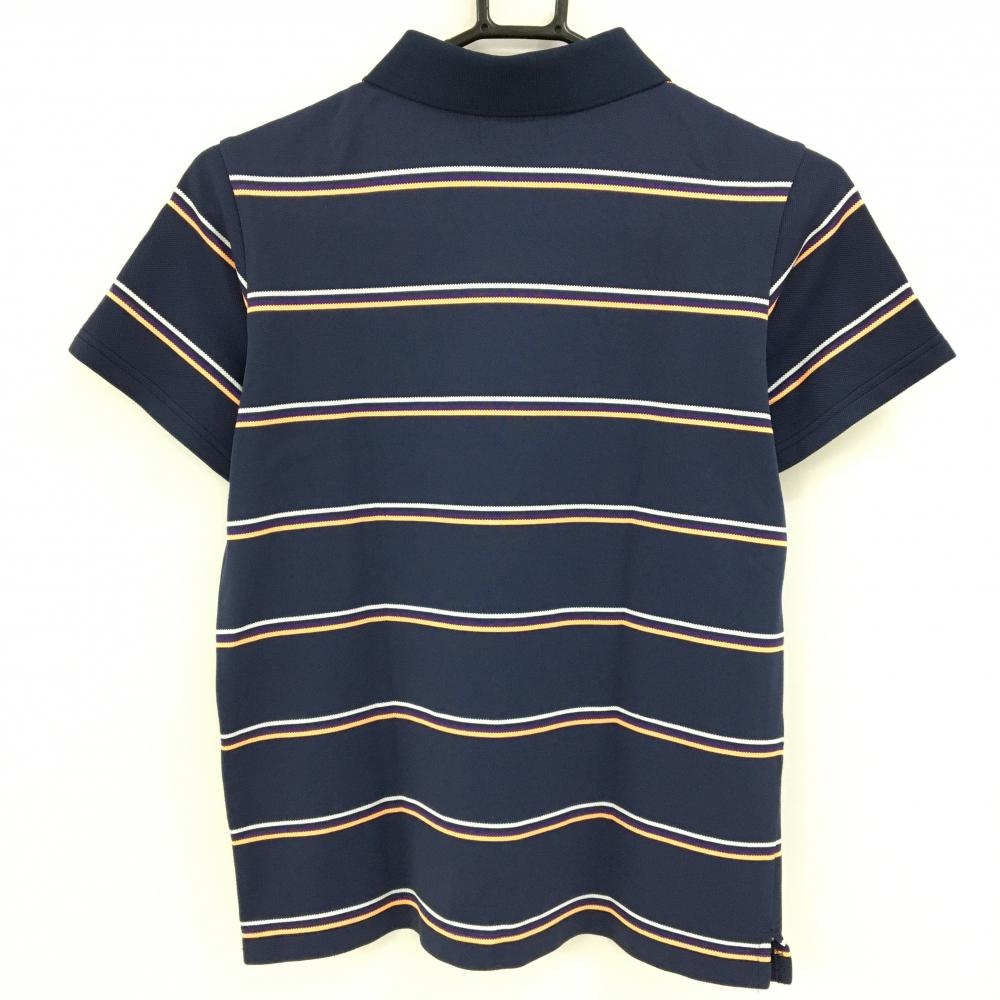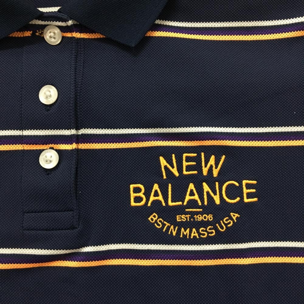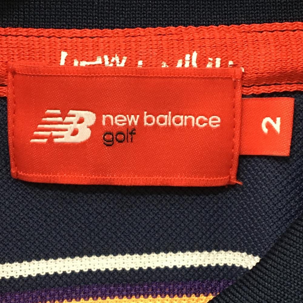 【美品】ニューバランスゴルフ 半袖ポロシャツ ネイビー×オレンジ×パープル ボーダー レディース 2(L) ゴルフウェア New Balance