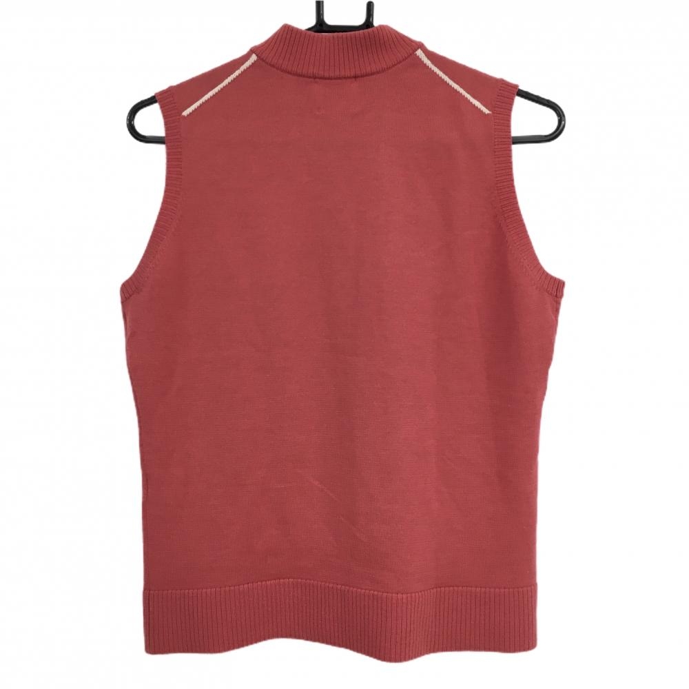 【超美品】ゾーイ ニットハイネックベスト ピンク系×白 ハーフジップ 胸ロゴ ウール100% レディース L ゴルフウェア ZOY