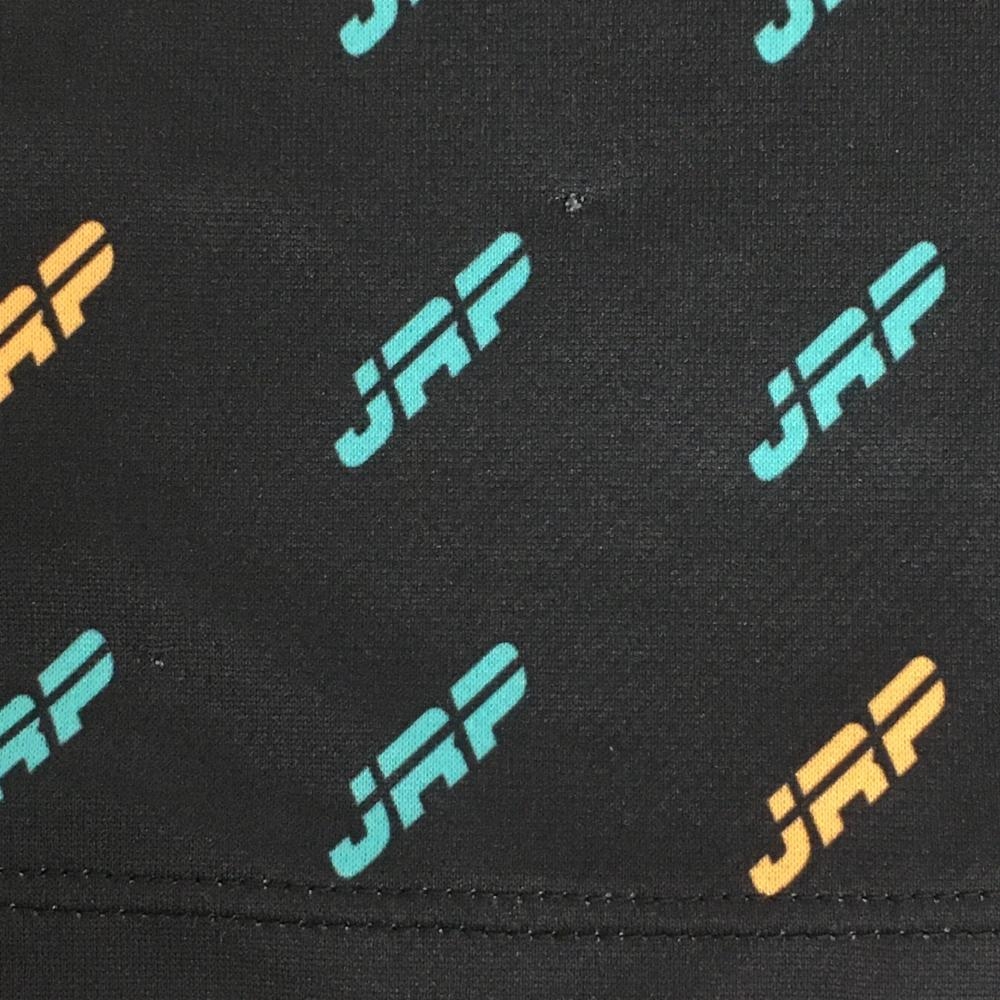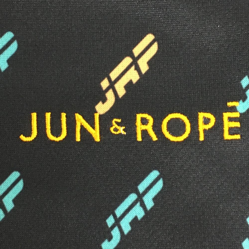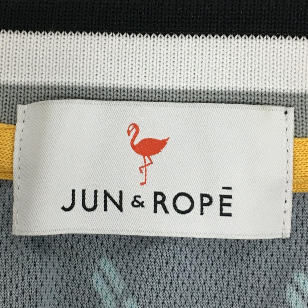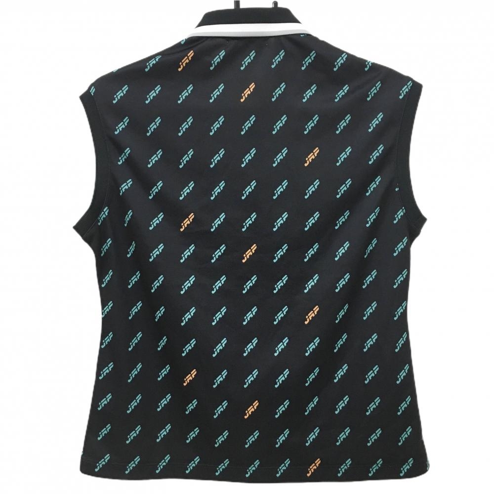 【美品】ジュンアンドロペ ノースリーブポロシャツ 黒×ブルーグリーン 英字総柄 ハーフジップ レディース L ゴルフウェア JUN&ROPE