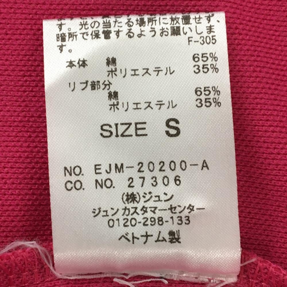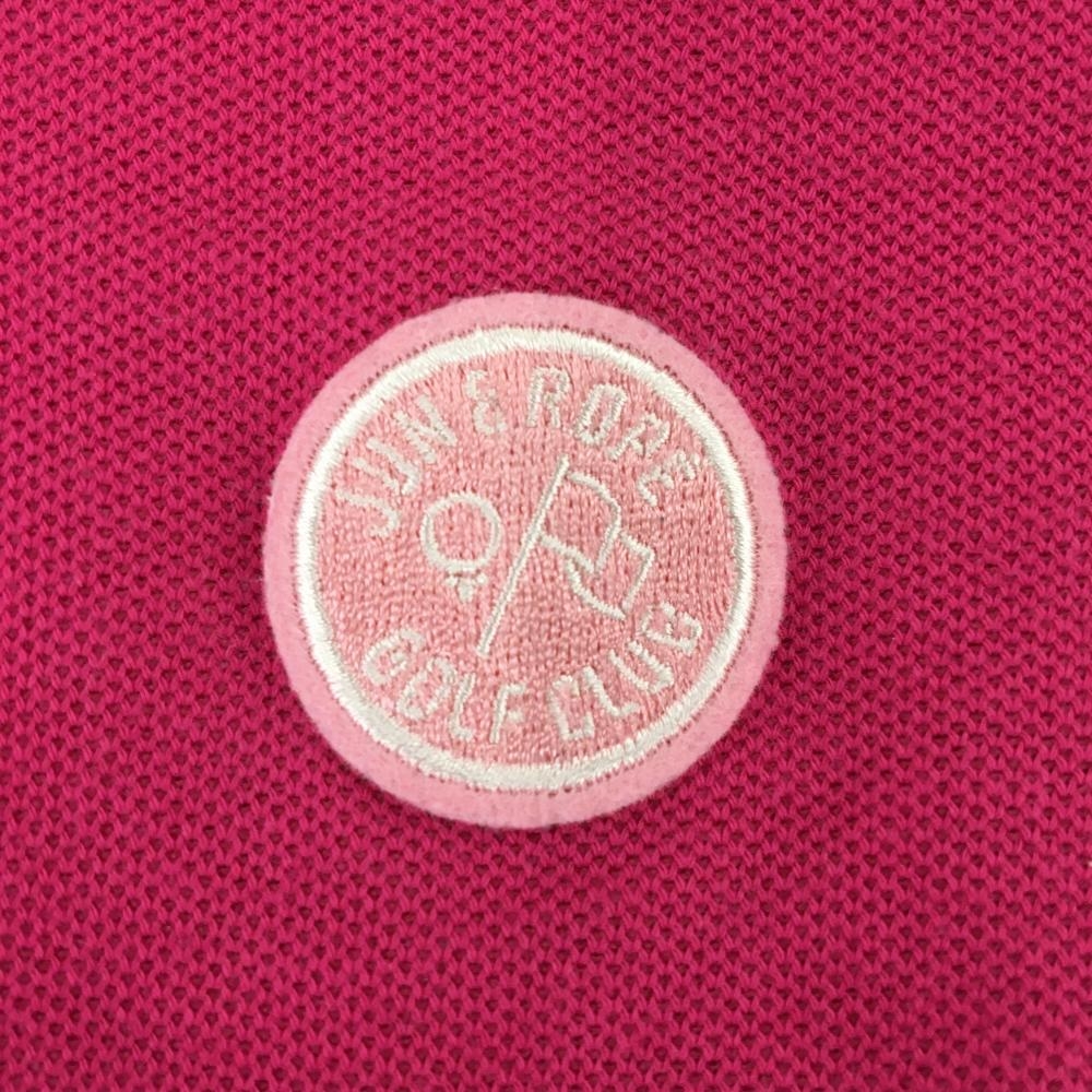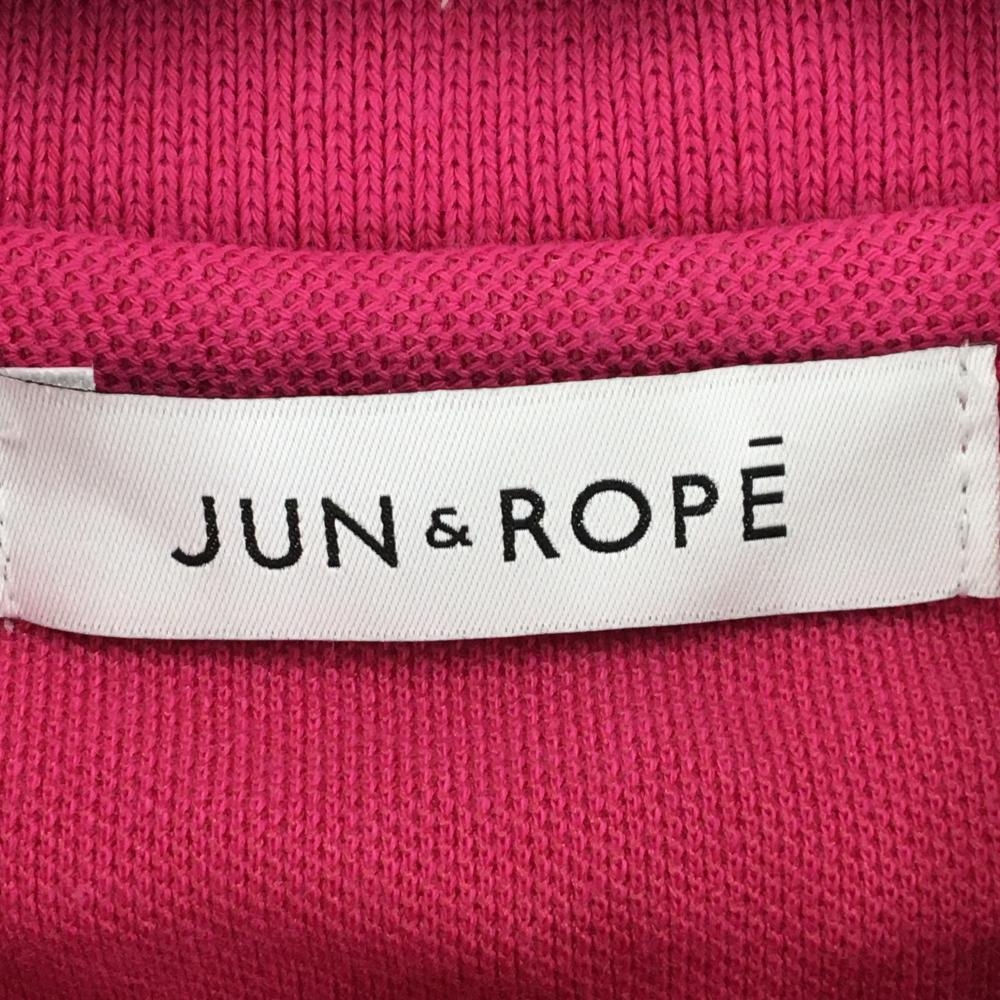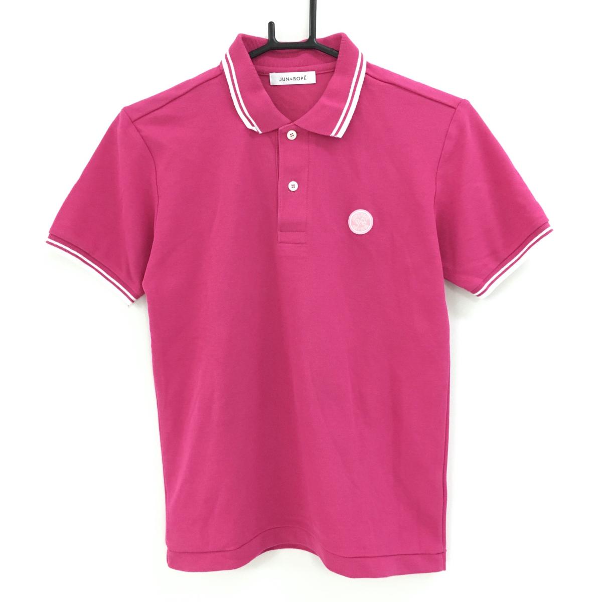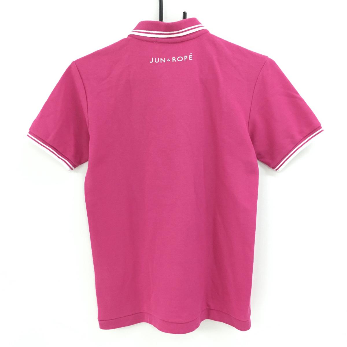 【美品】ジュンアンドロペ 半袖ポロシャツ ピンク×白 襟・袖口ライン ロゴワッペン レディース S ゴルフウェア JUN&ROPE