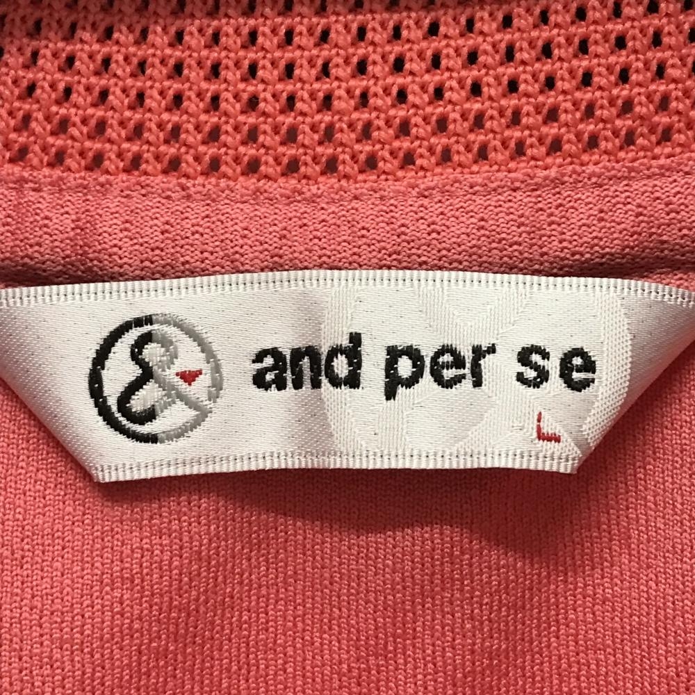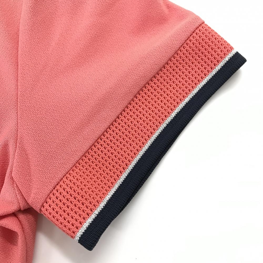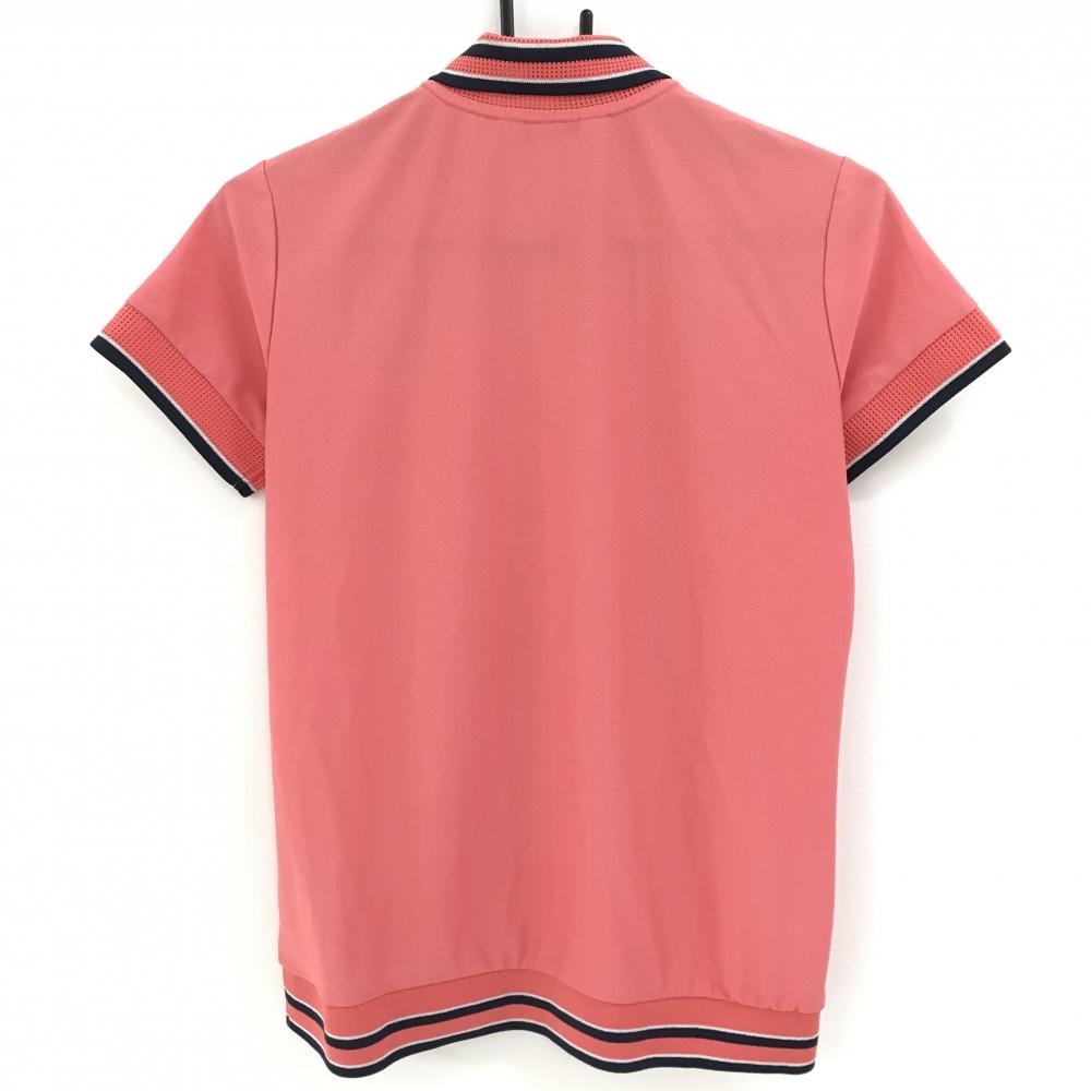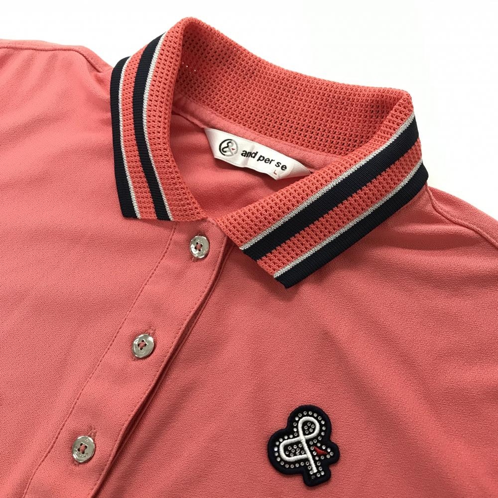 【超美品】アンパスィ 半袖ポロシャツ サーモンピンク系×ネイビー 襟・袖口メッシュ ロゴワッペン レディース L ゴルフウェア and per se