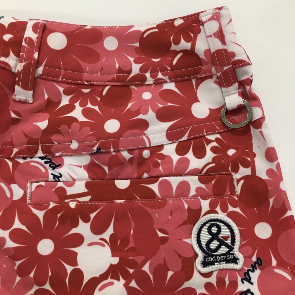 【超美品】アンパスィ スカート レッド×ピンク×白 花柄 ロゴ レディース M ゴルフウェア and per se