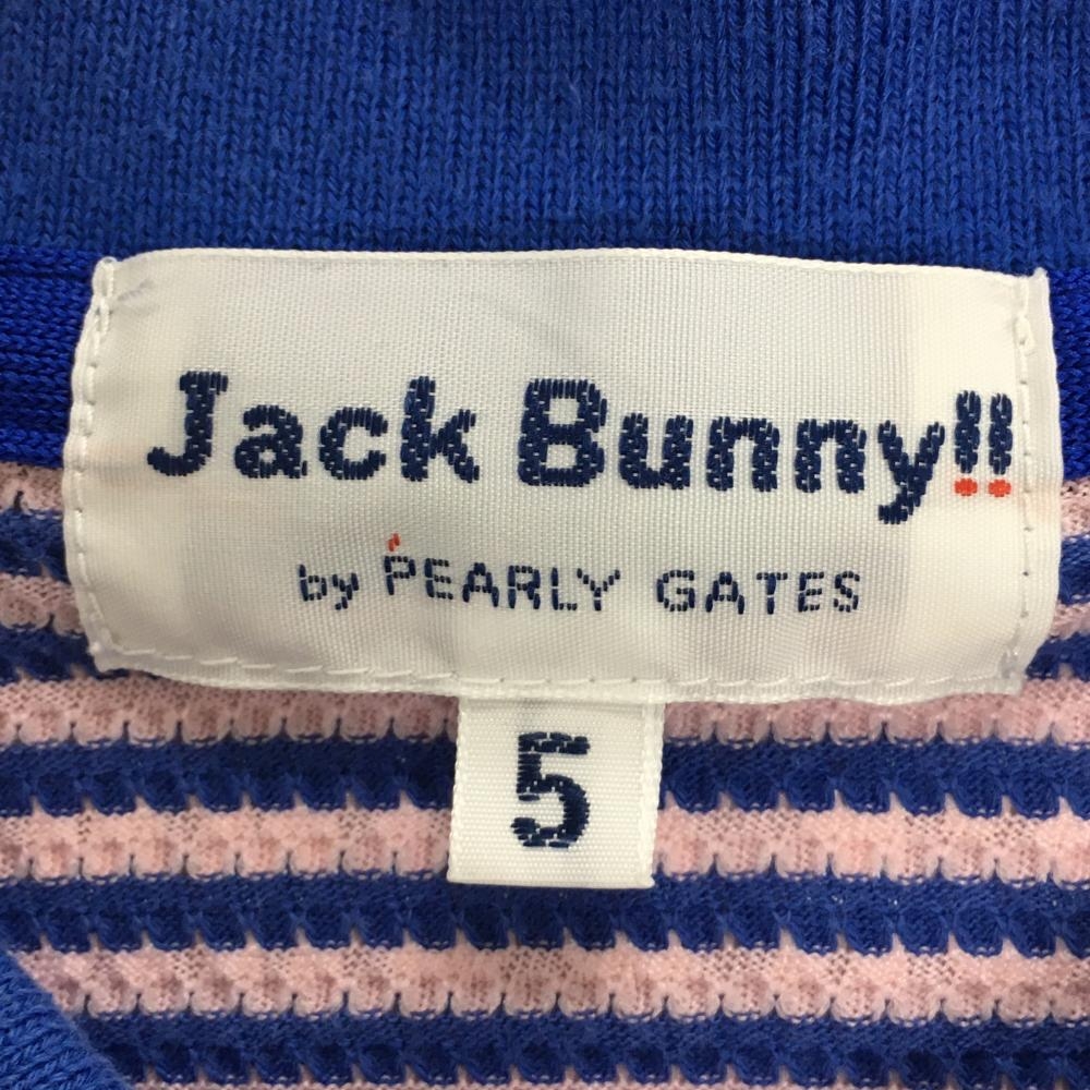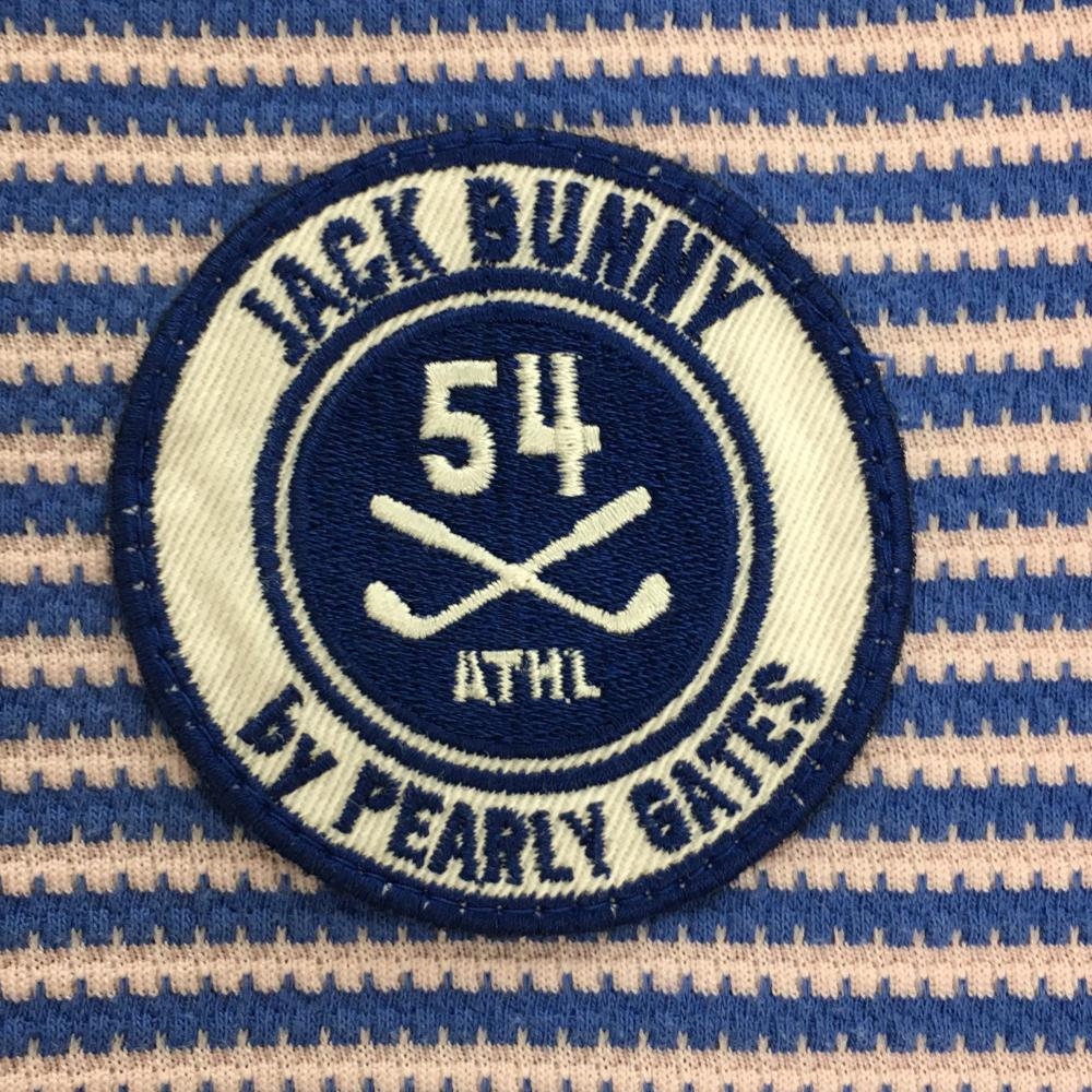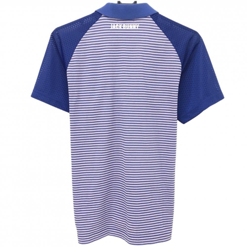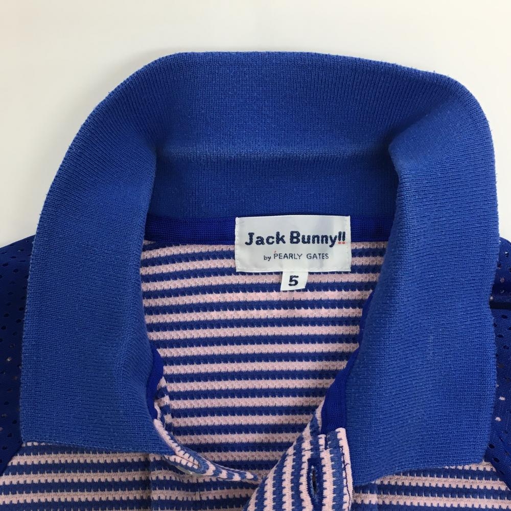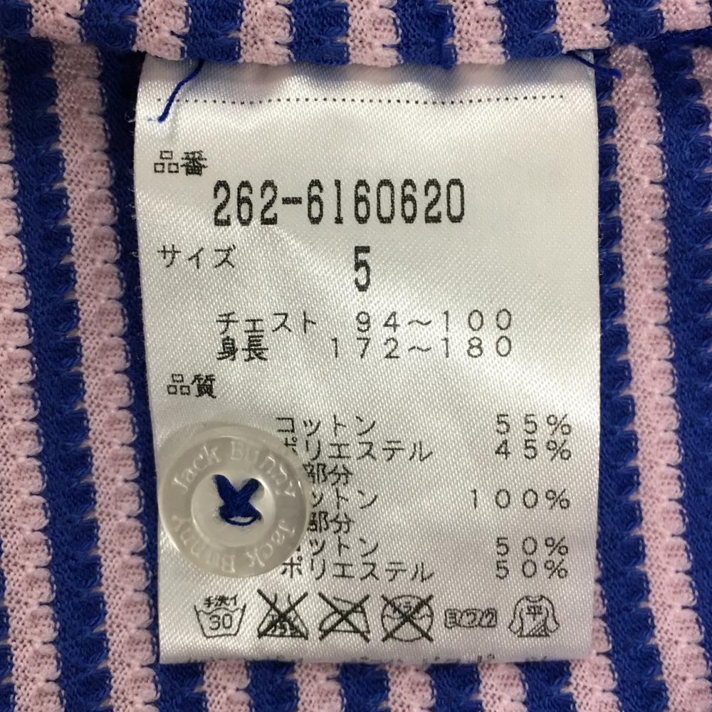 ジャックバニー 半袖ポロシャツ ライトピンク×ブルー 身頃ボーダー 袖メッシュ メンズ 5(L) ゴルフウェア Jack Bunny