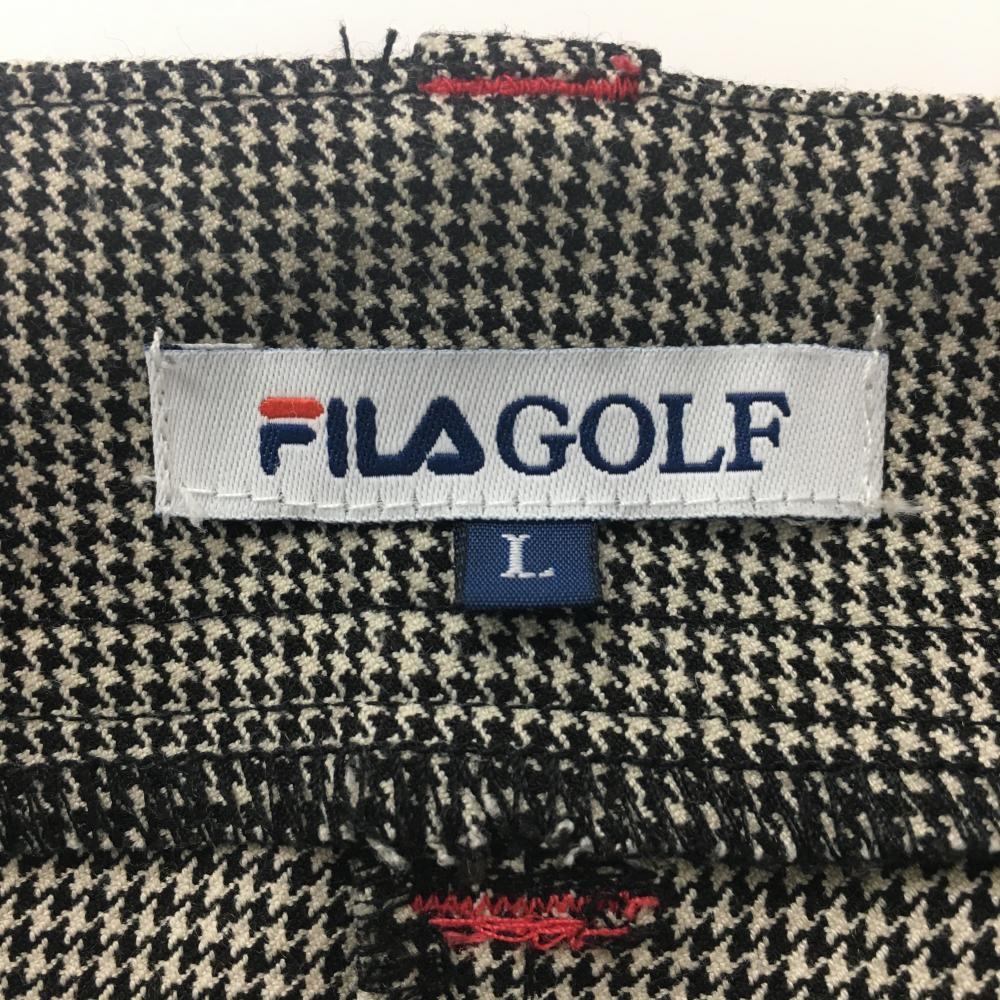 【美品】フィラゴルフ スカート 黒×ベージュ 千鳥格子 飾りボタン レディース L ゴルフウェア FILA GOLF