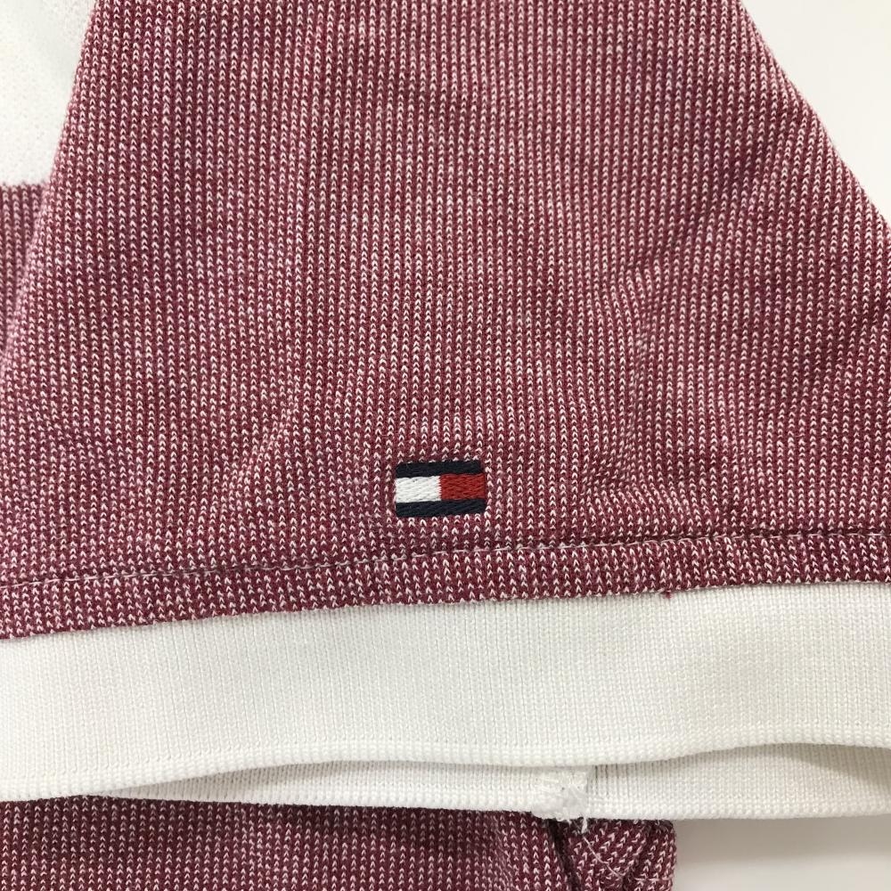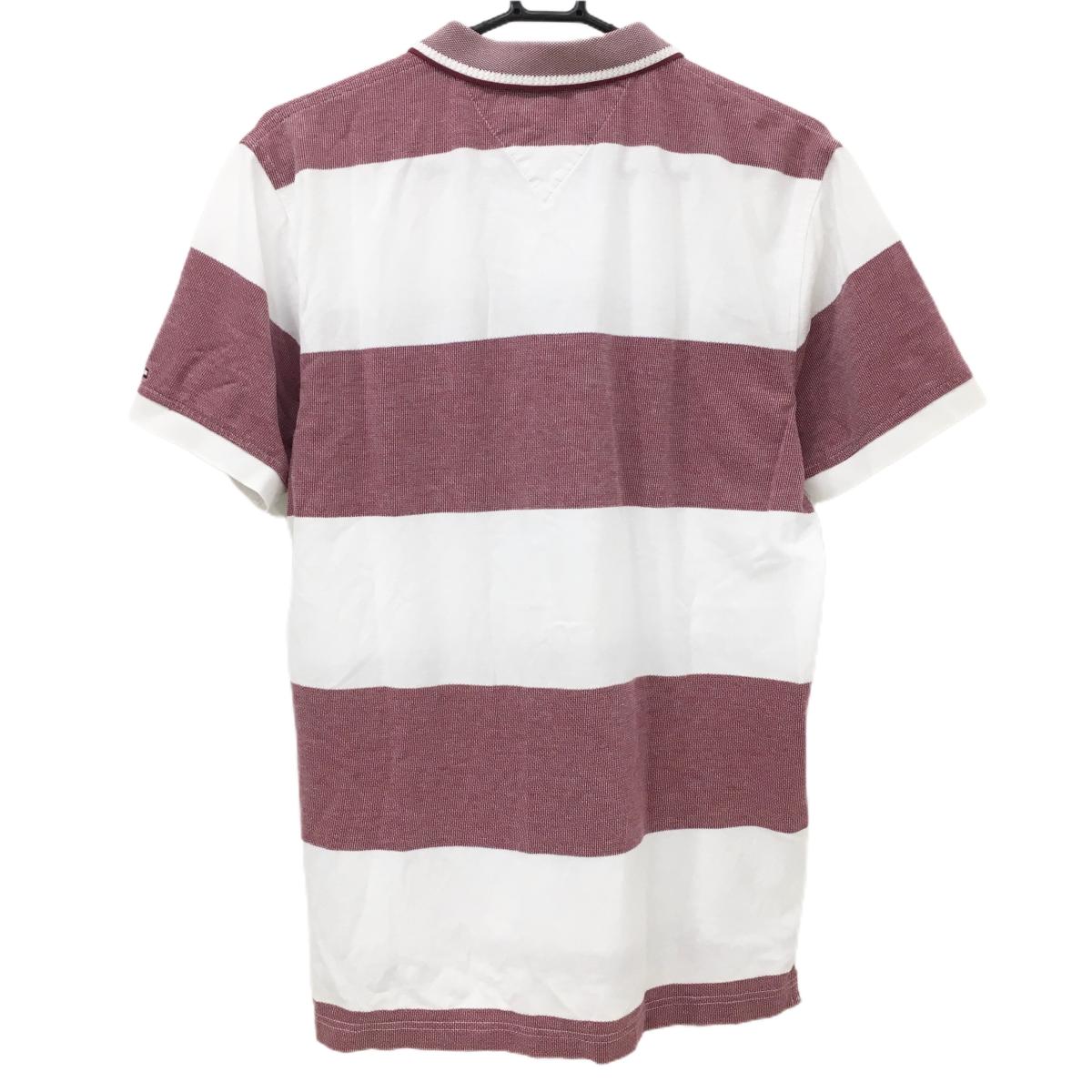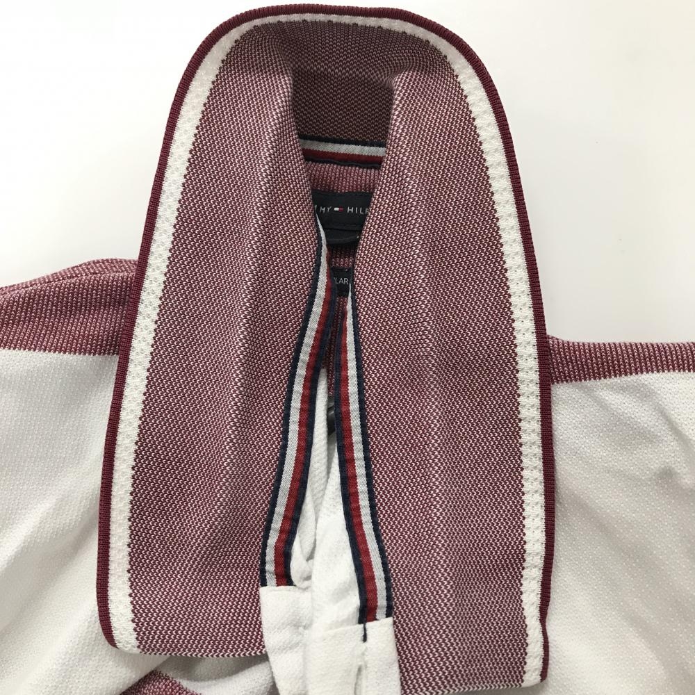 トミーヒルフィガー 半袖ポロシャツ 白×ボルドー系 ボーダー REGULAR FIT コットン100% メンズ L ゴルフウェア Tommy Hilfiger Golf