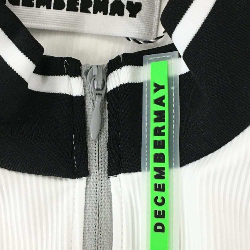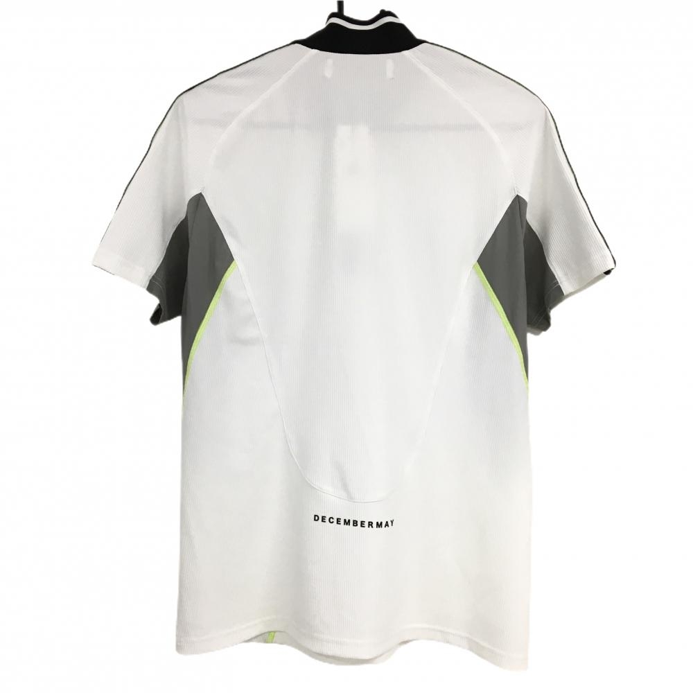 【新品】ディセンバーメイ 半袖ハイネックシャツ 白×黒×蛍光グリーン ハーフジップ メンズ M ゴルフウェア DECEMBERMAY