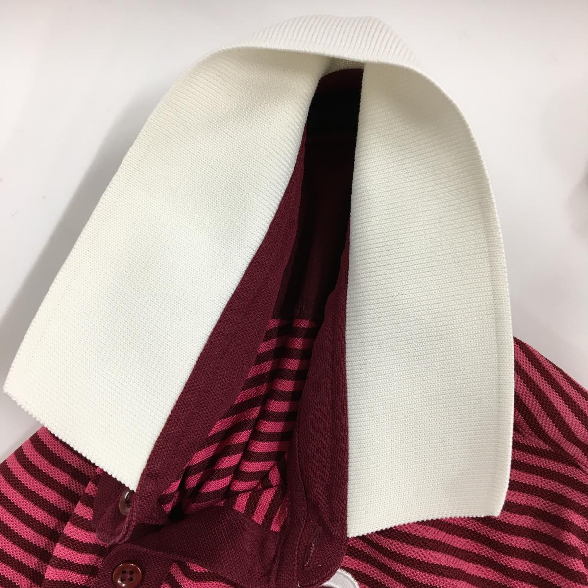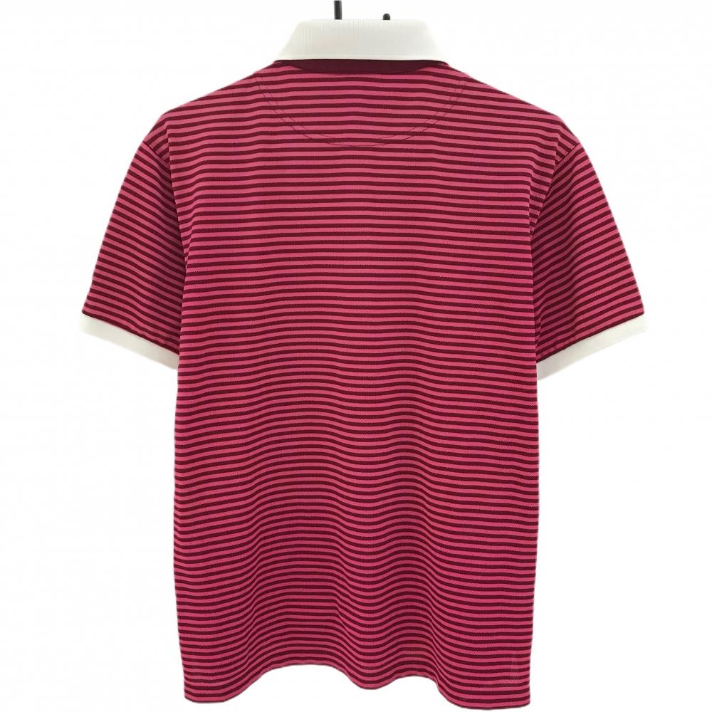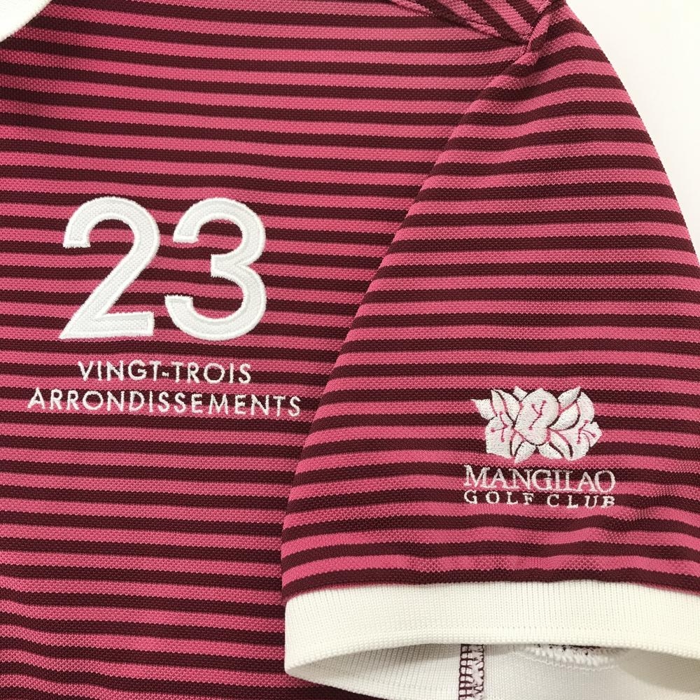 【美品】23区スポーツ 半袖ポロシャツ ピンク×ボルドー ボーダー MANGILAO GOLF CLUB メンズ L ゴルフウェア 23区