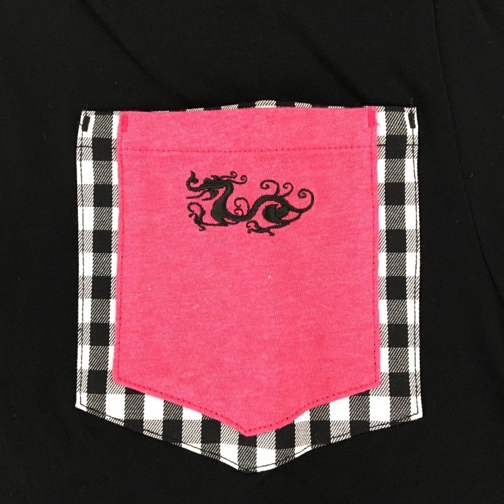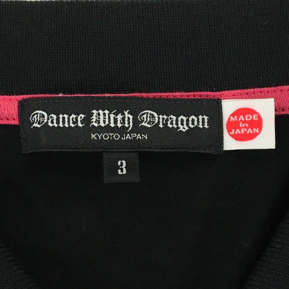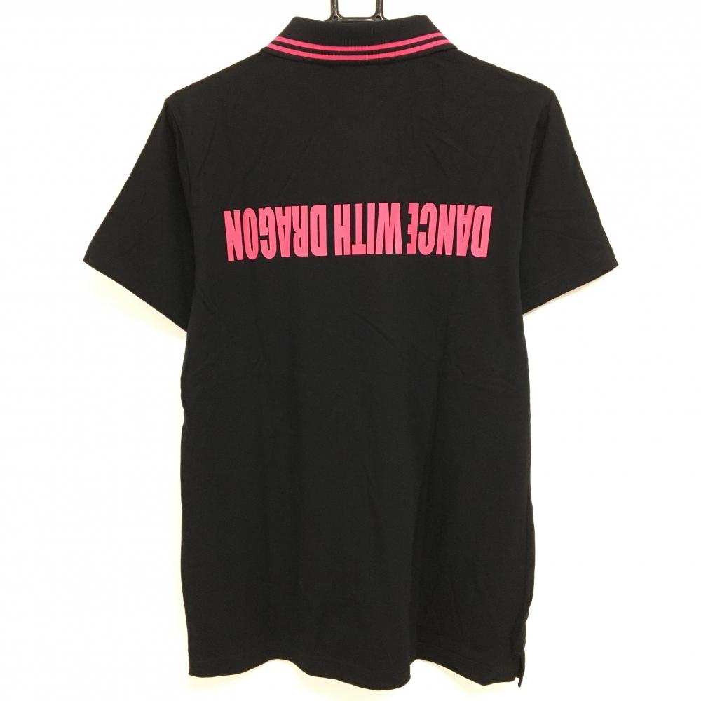 【超美品】ダンスウィズドラゴン 半袖ポロシャツ 黒×ピンク バックロゴ 胸ポケット メンズ 3(L) ゴルフウェア Dance With Dragon