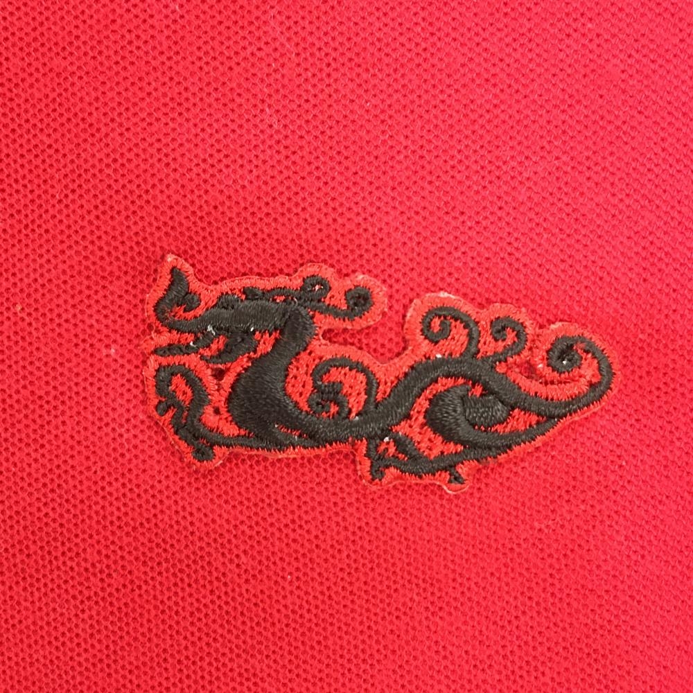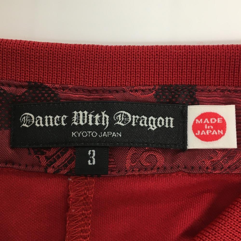 【超美品】ダンスウィズドラゴン 半袖ポロシャツ レッド 襟ライン ドラゴン刺しゅう メンズ 3(L) ゴルフウェア Dance With Dragon
