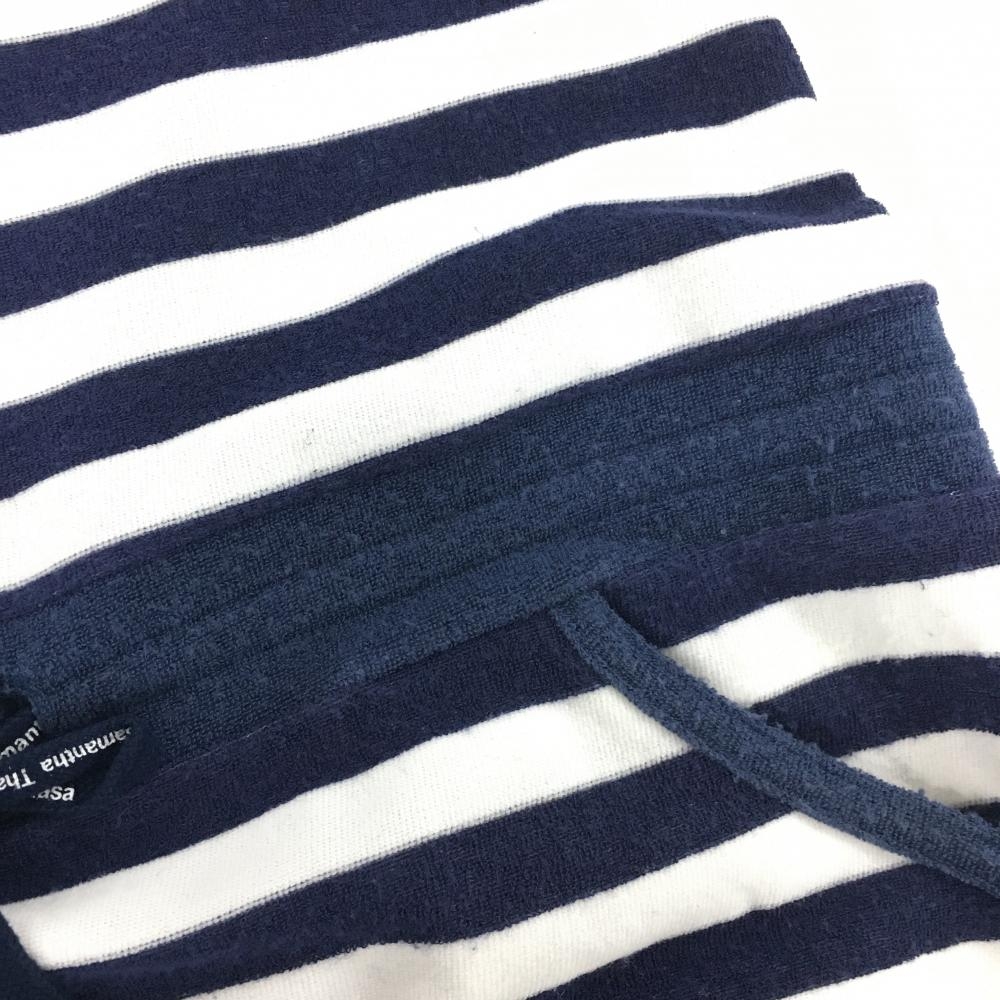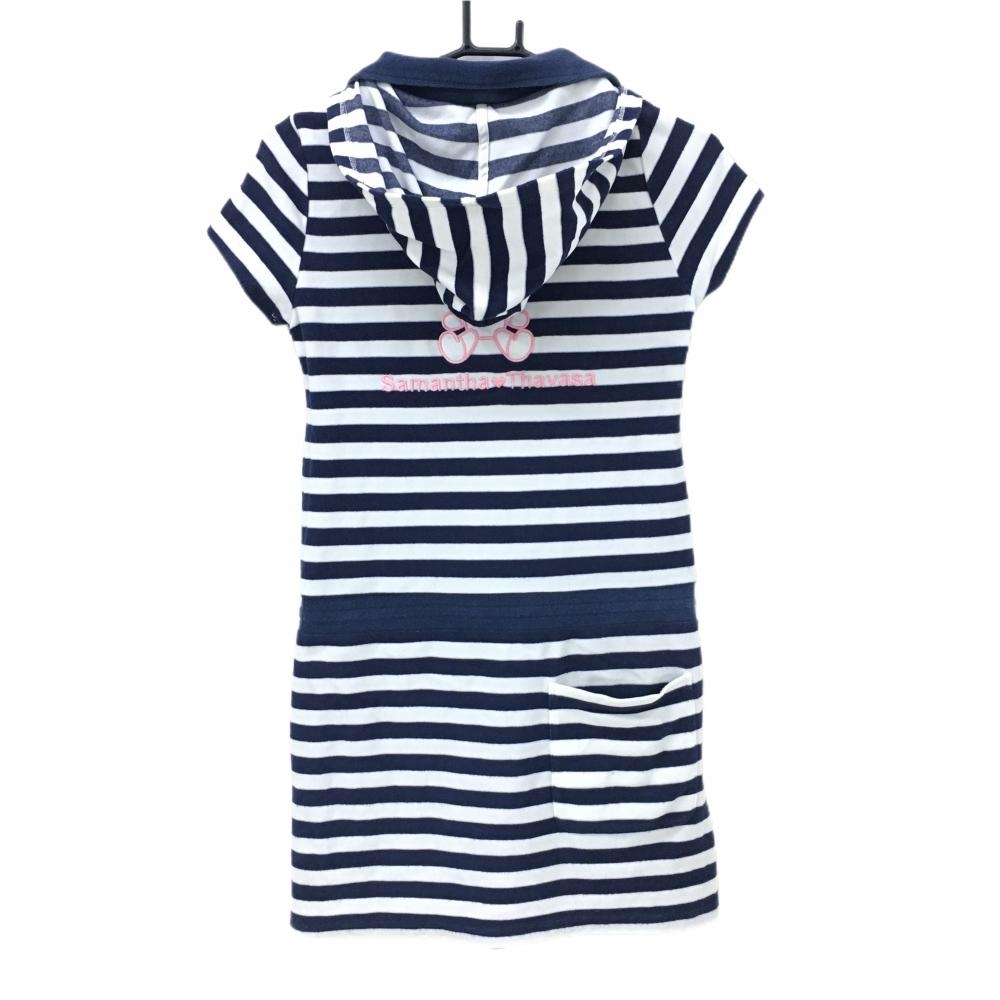 サマンサタバサUNDER25 フード付半袖ワンピース ネイビー×白 ボーダー 襟付き パイル地 レディース S ゴルフウェア Samantha Thavasa