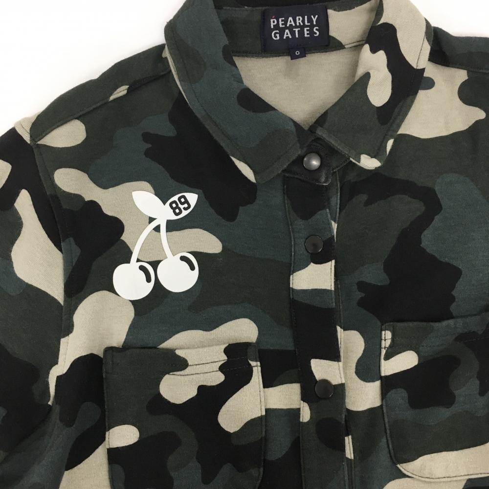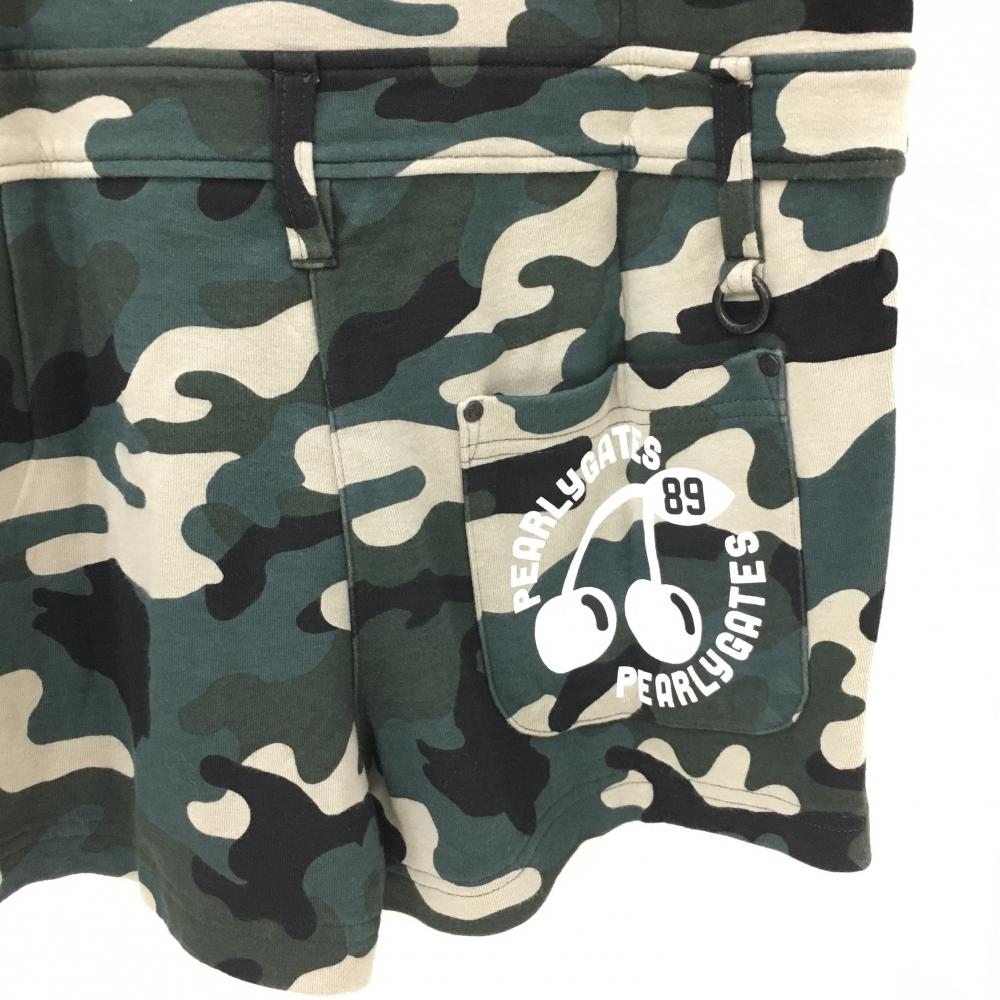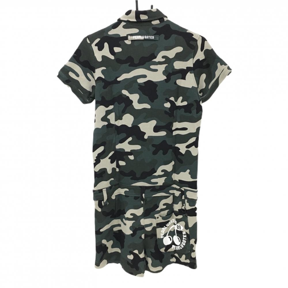 パーリーゲイツ 半袖オールインワン グリーン系×ベージュ×黒 カモフラ 迷彩 スナップボタン レディース 0(S) ゴルフウェア PEARLY GATES
