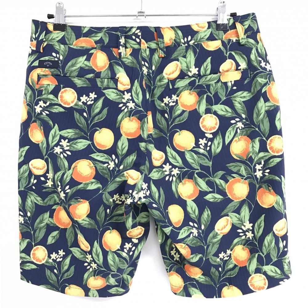 【超美品】キャロウェイ ハーフパンツ ネイビー×オレンジ オレンジ総柄 ストライプ地模様 メンズ L ゴルフウェア Callaway