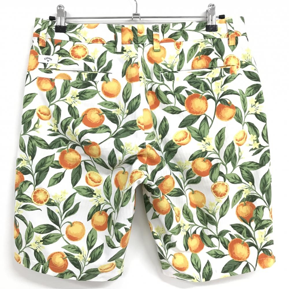 【美品】キャロウェイ ハーフパンツ 白×オレンジ オレンジ総柄 ストライプ地模様 メンズ L ゴルフウェア Callaway