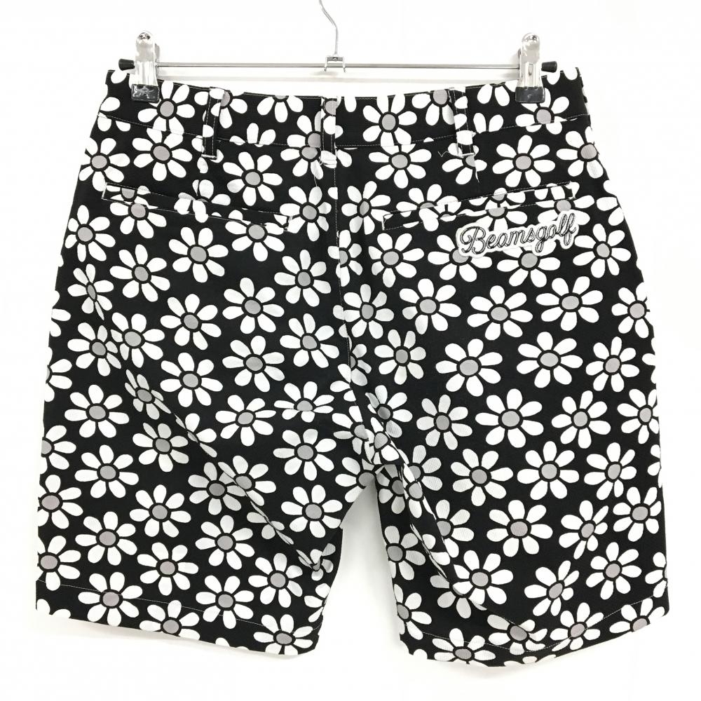 【美品】ビームスゴルフ ハーフパンツ 黒×白 花柄 サッカー生地 メンズ S ゴルフウェア BEAMS GOLF