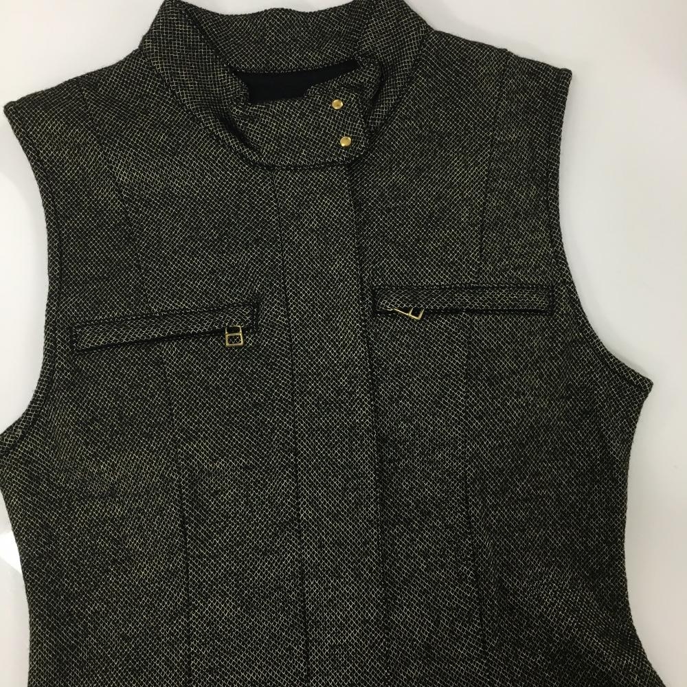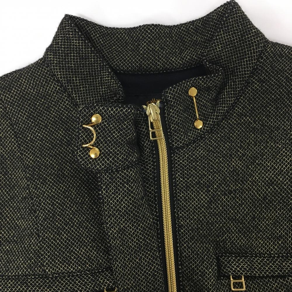 キャロウェイ ノースリーブワンピース 黒×ゴールド ダイヤ調 ウール混 レディース M ゴルフウェア Callaway