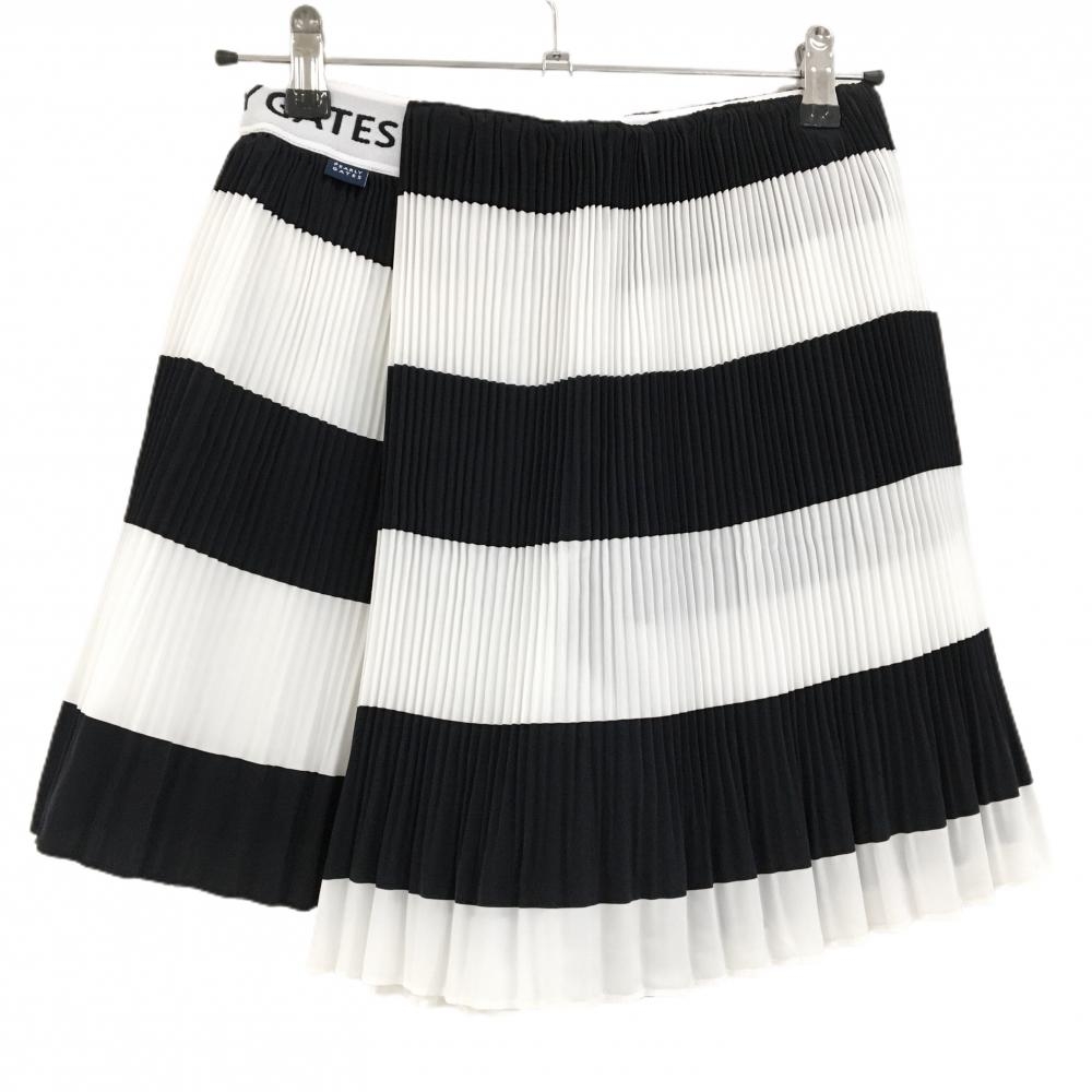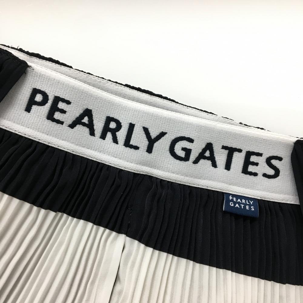 【美品】パーリーゲイツ プリーツスカート 白×ダークネイビー ボーダー 内側パンツ 裏地付 レディース 1(M) ゴルフウェア PEARLY GATES