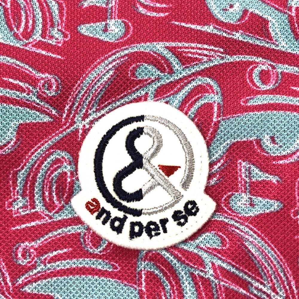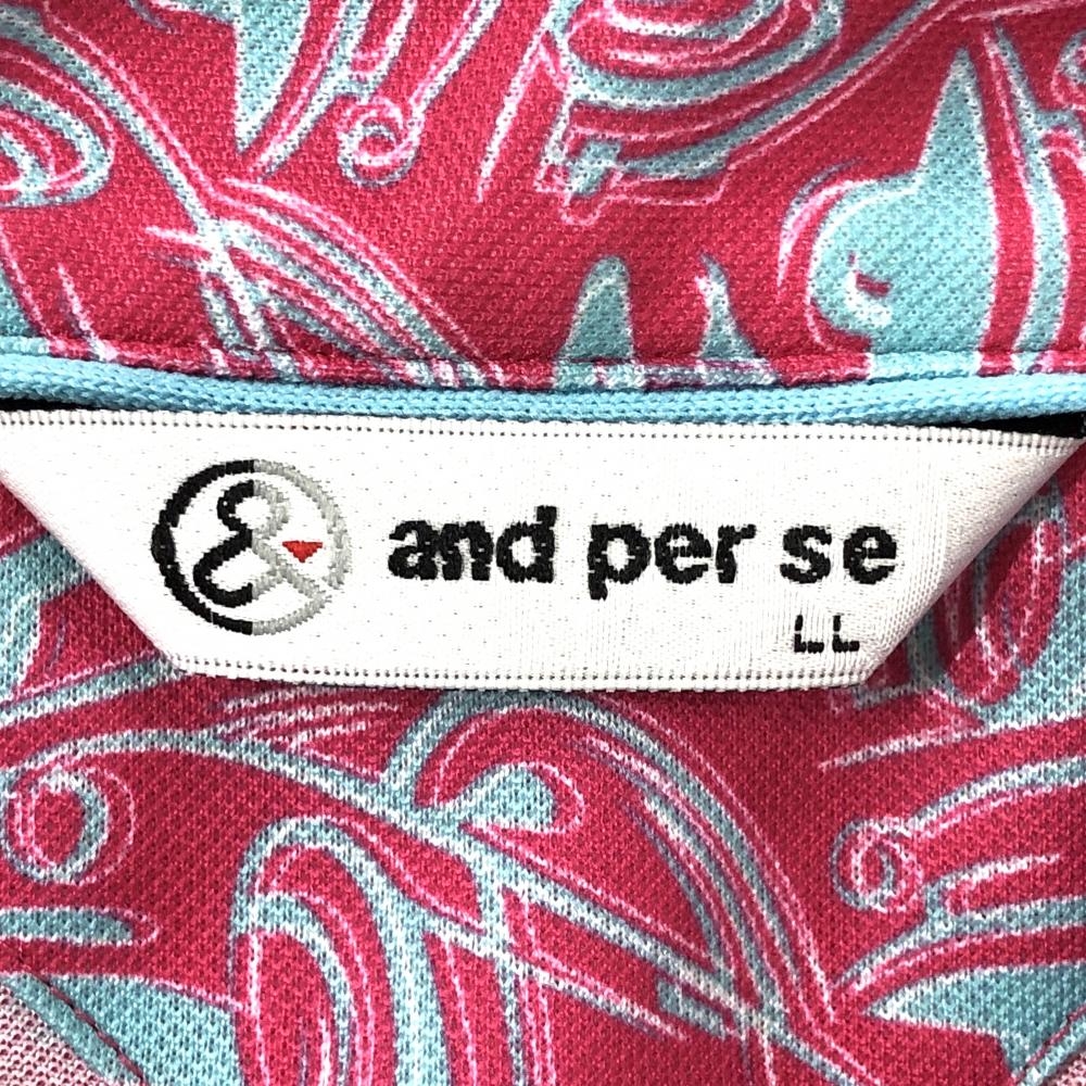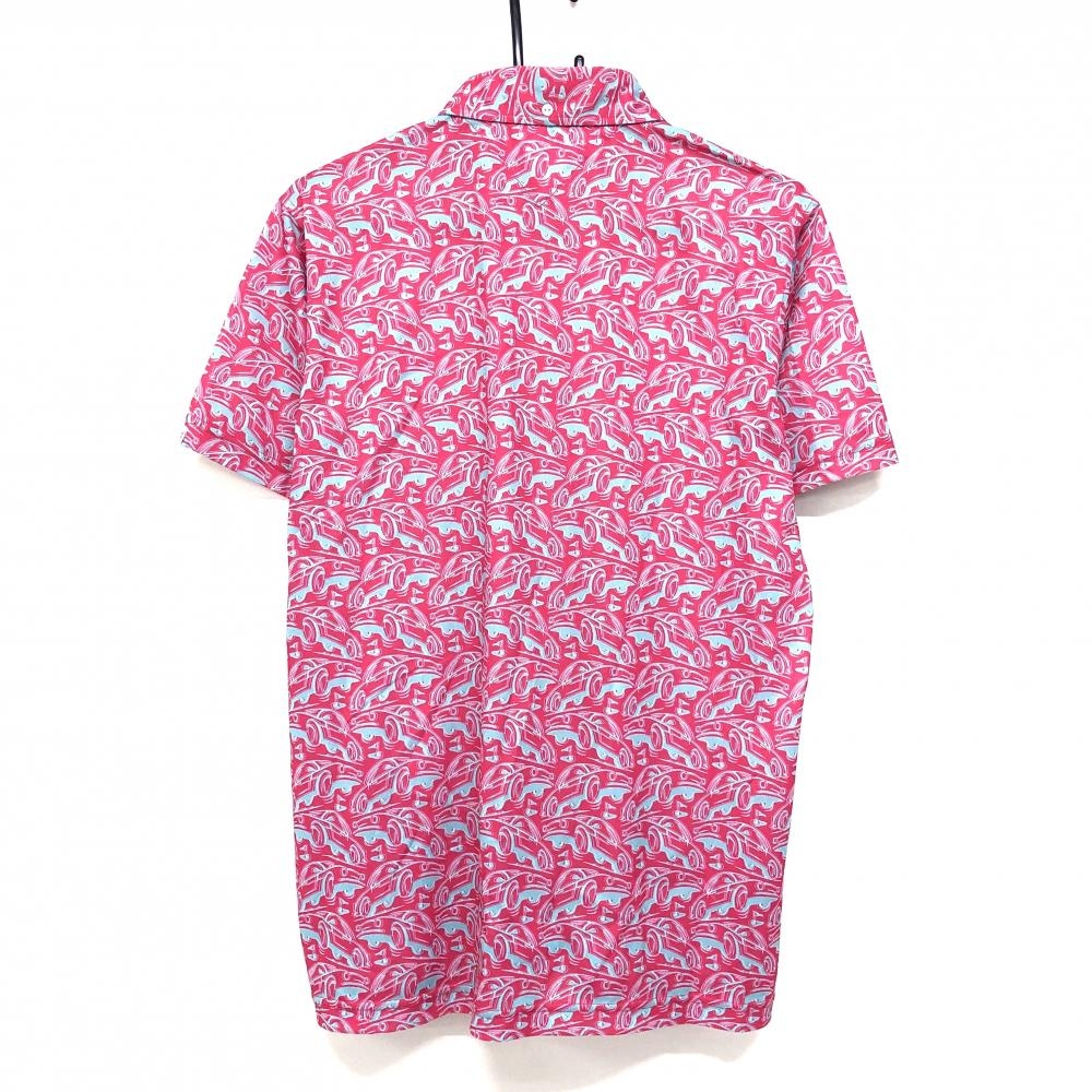 【超美品】アンパスィ 半袖ポロシャツ ピンク×グレー 車柄 ボタンダウン メンズ LL ゴルフウェア and per se
