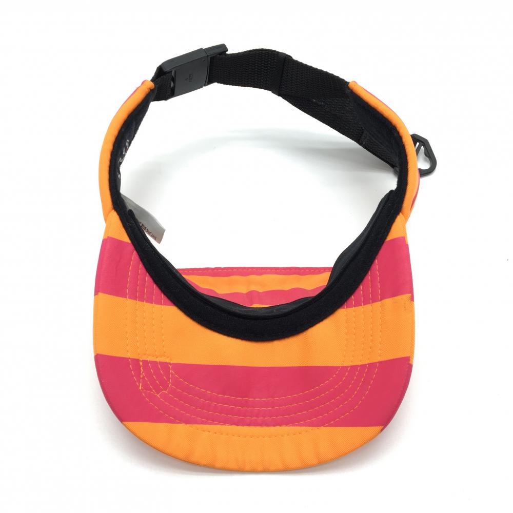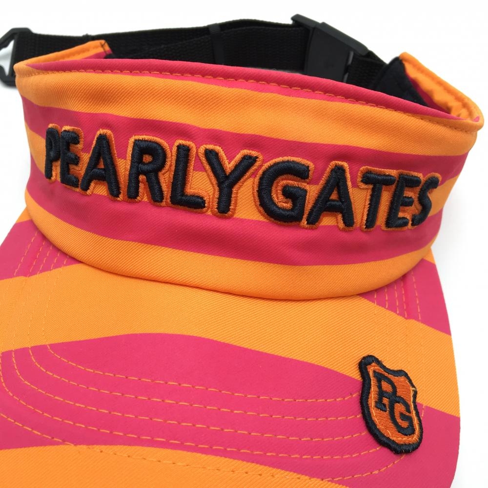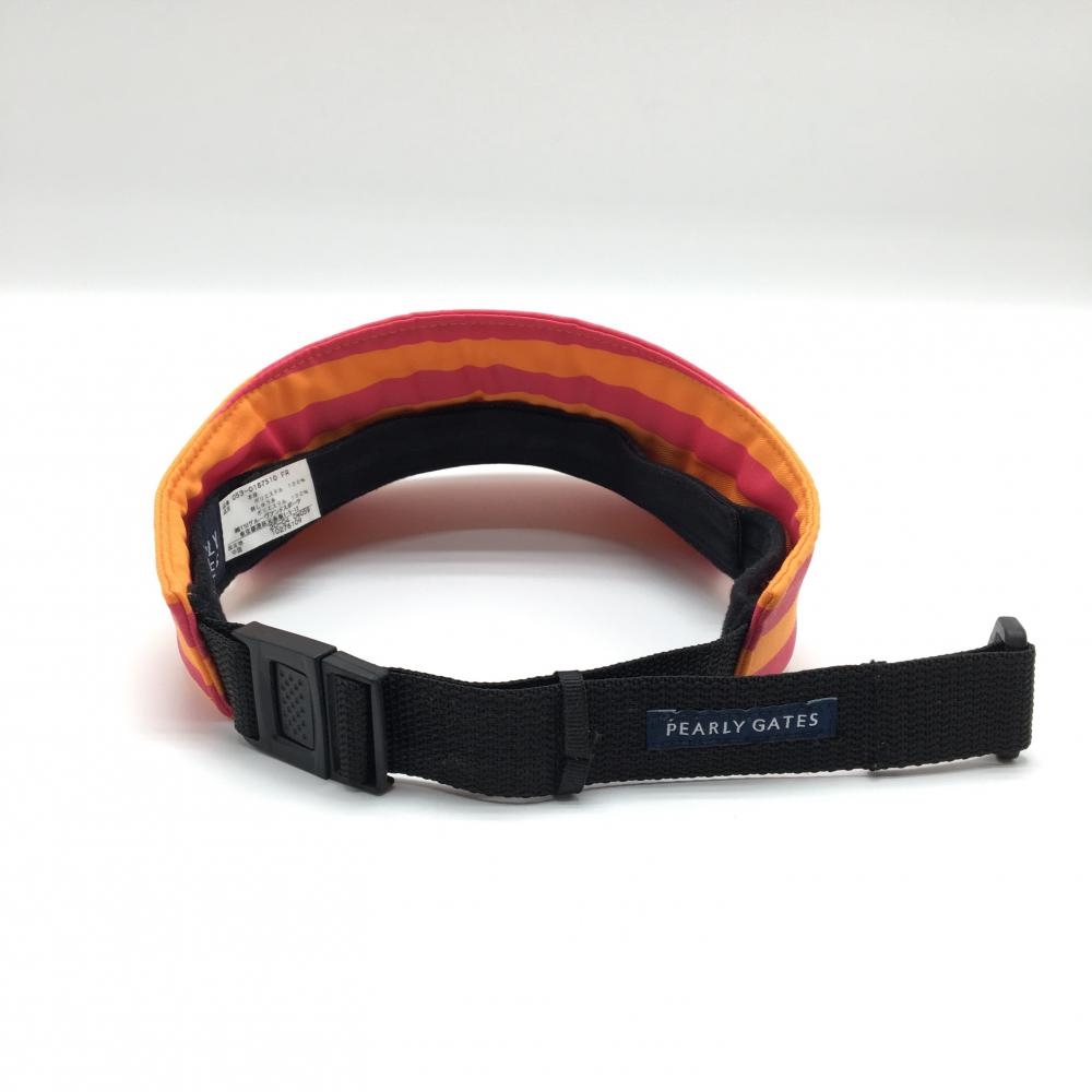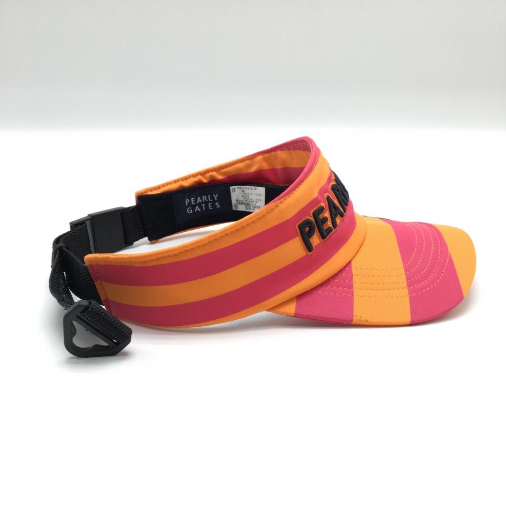 【美品】パーリーゲイツ サンバイザー オレンジ×ピンク ボーダー 立体ロゴ 汗取りパッド付 FR ゴルフウェア PEARLY GATES
