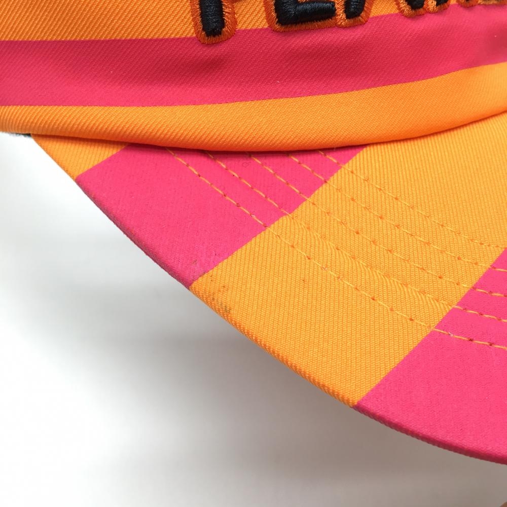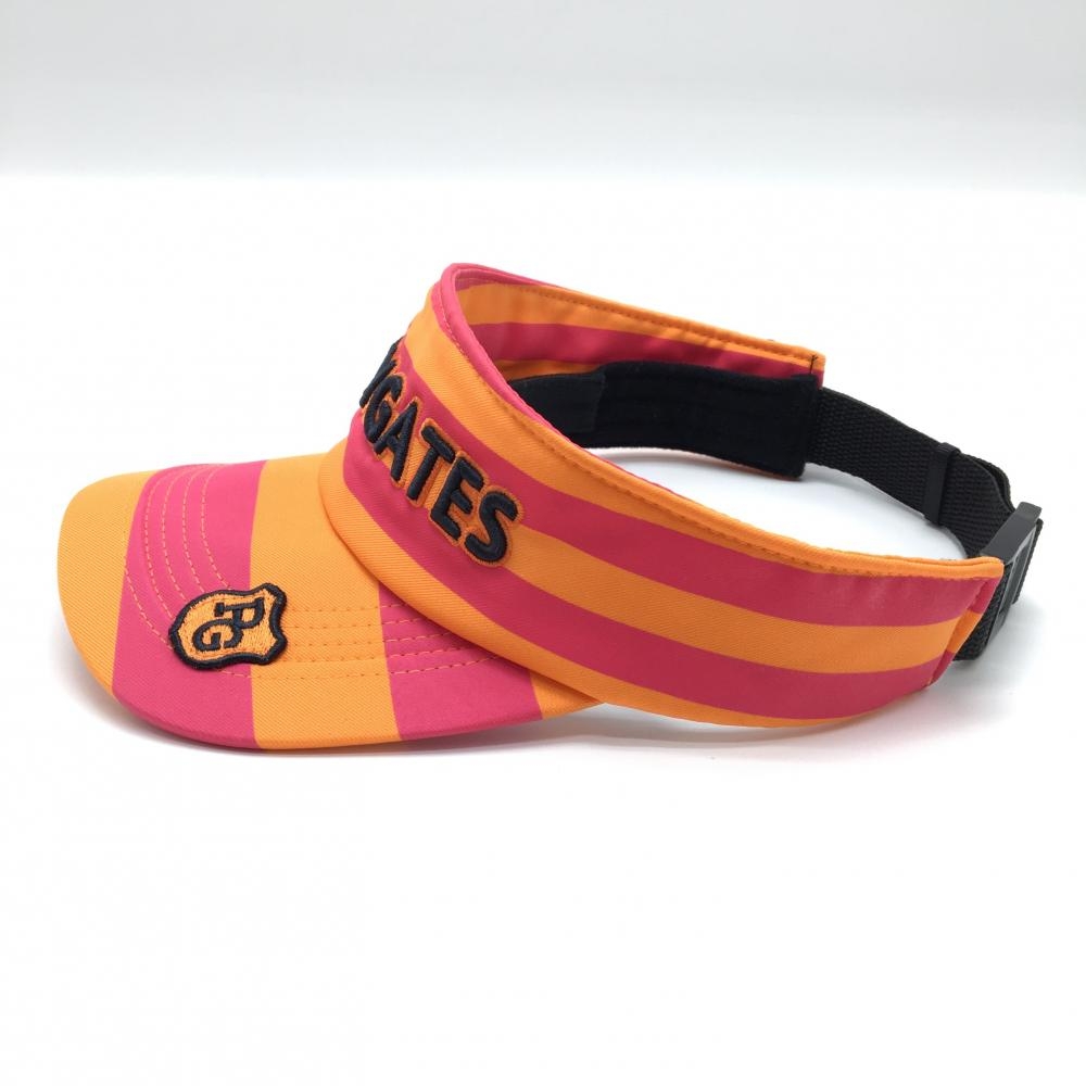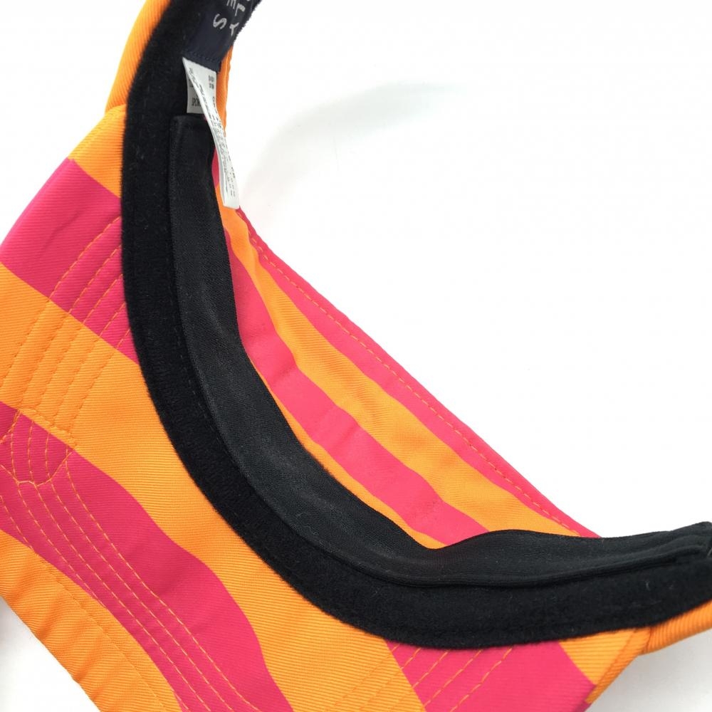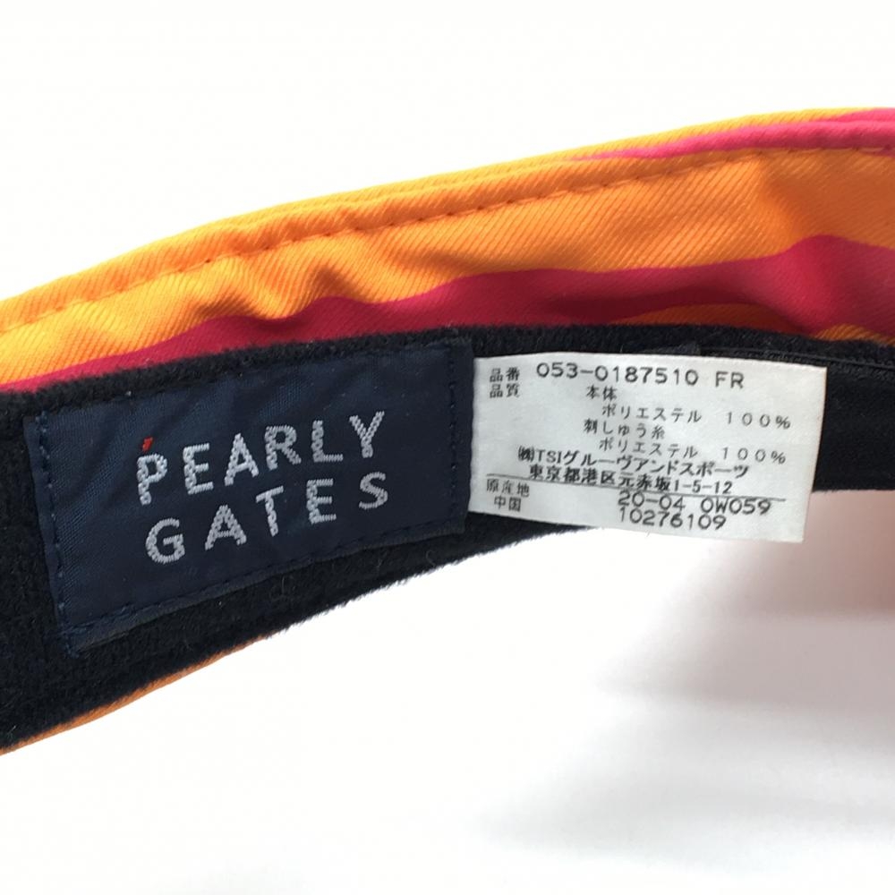【美品】パーリーゲイツ サンバイザー オレンジ×ピンク ボーダー 立体ロゴ 汗取りパッド付 FR ゴルフウェア PEARLY GATES
