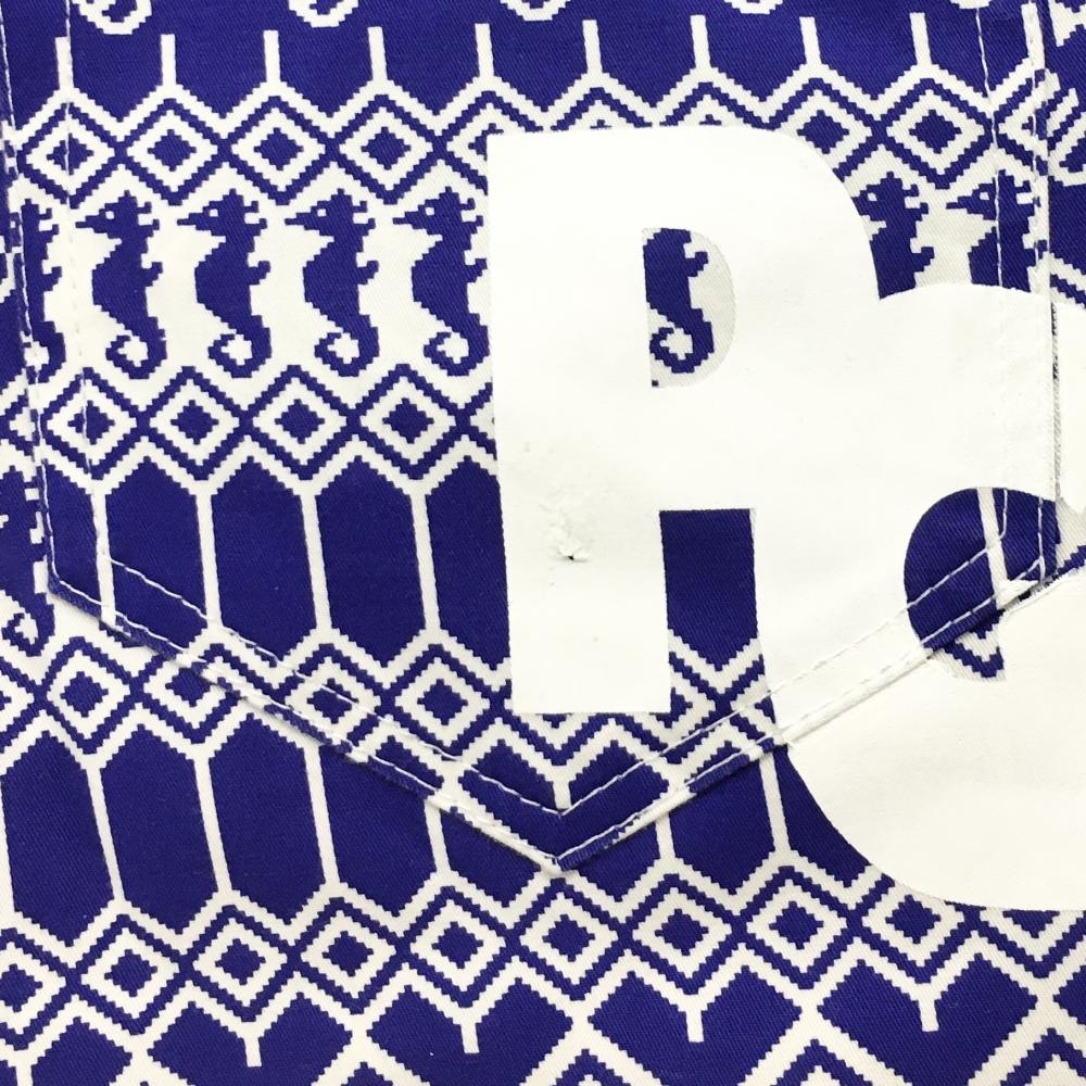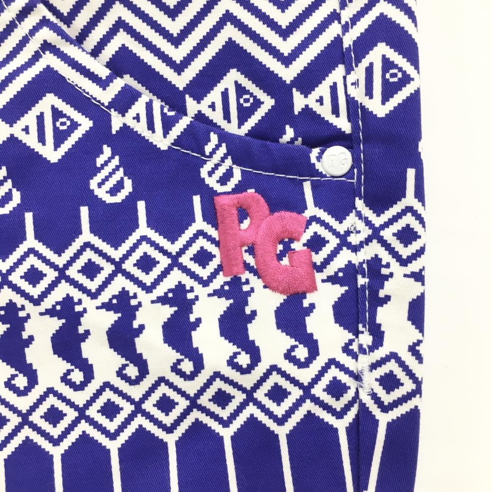 【美品】パーリーゲイツ パンツ ブルー×白 総柄 魚 貝 ストレッチ レディース 0(S) ゴルフウェア PEARLY GATES