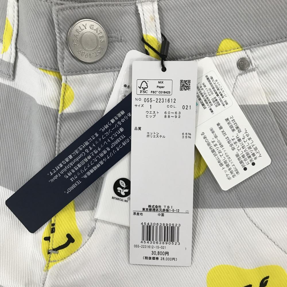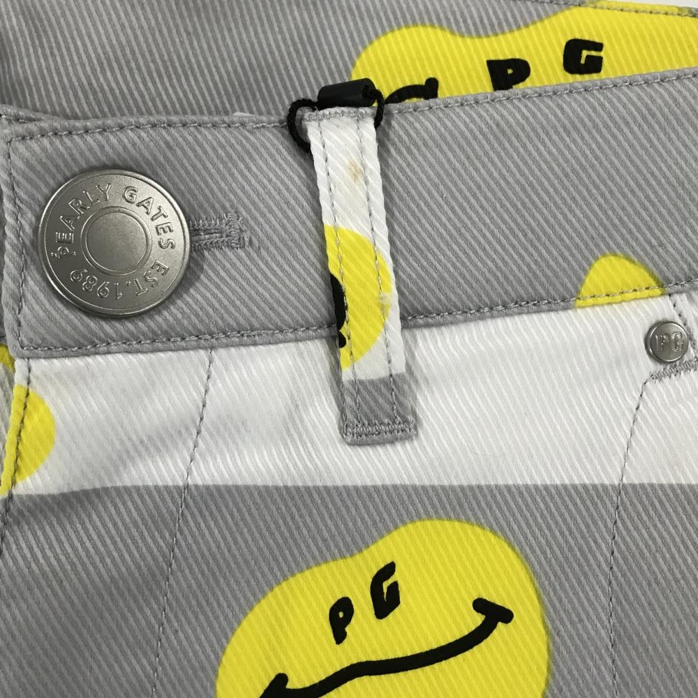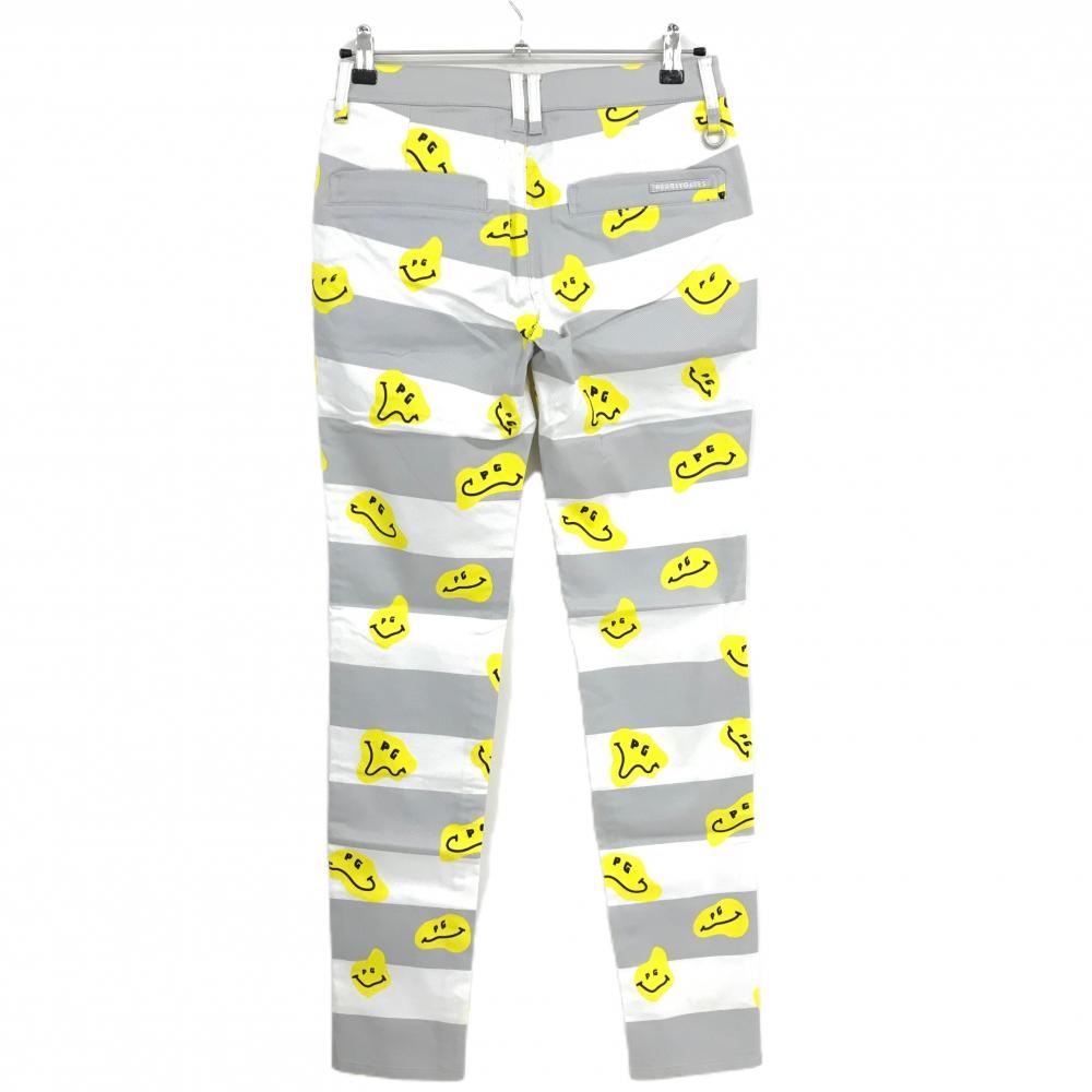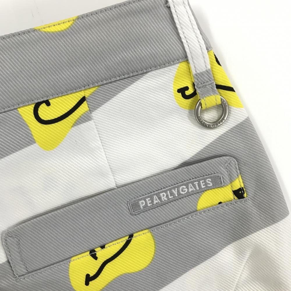 【美品】パーリーゲイツ パンツ 白×グレー×イエロー TOKE NIKO ボーダー ロゴ刺しゅう レディース 1(M) ゴルフウェア PEARLY GATES