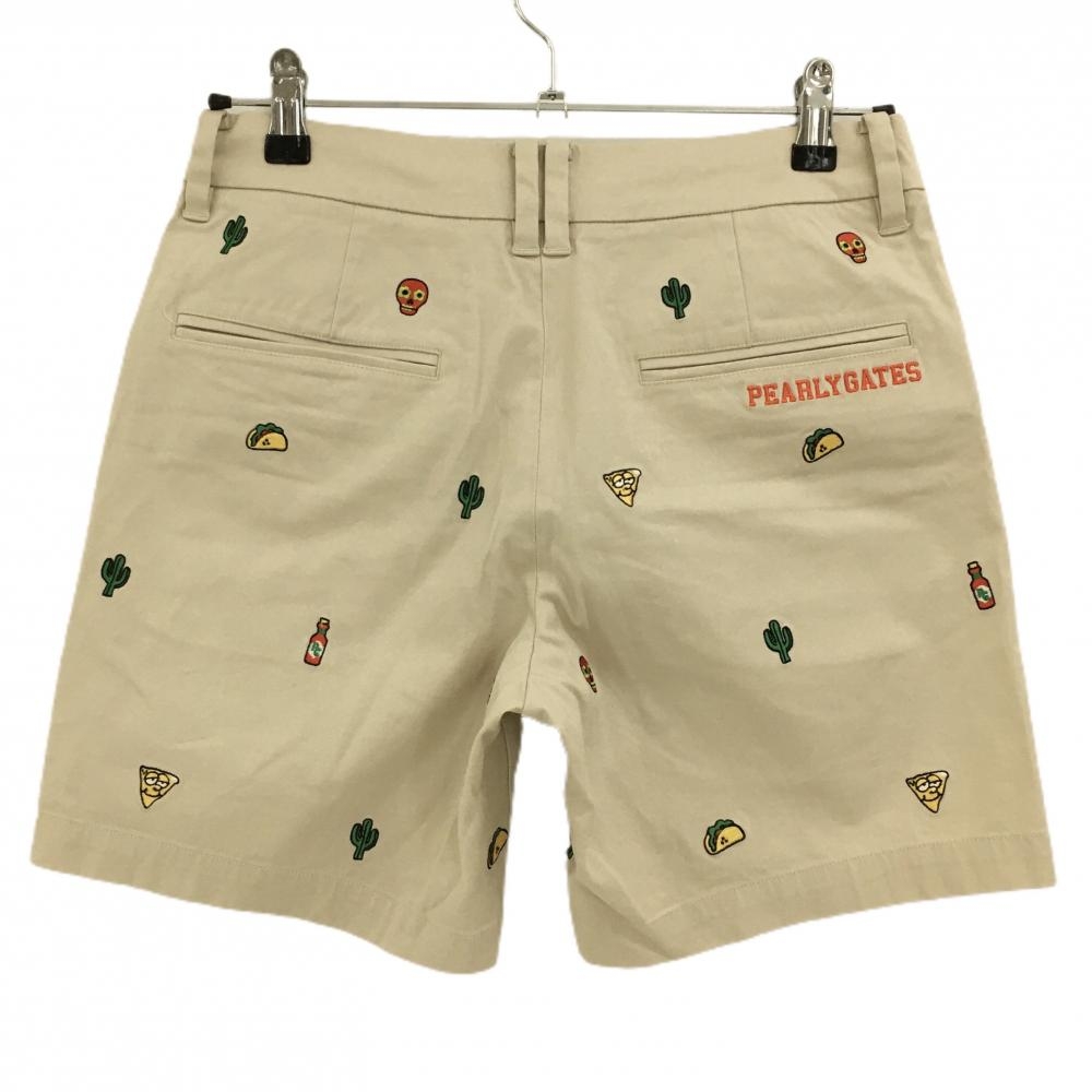 【美品】パーリーゲイツ ハーフパンツ ベージュ 刺しゅう総柄 ストレッチ レディース 0(S) ゴルフウェア PEARLY GATES