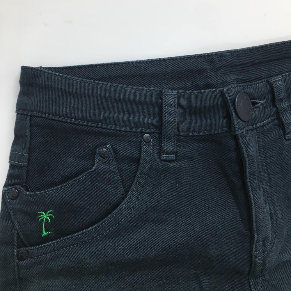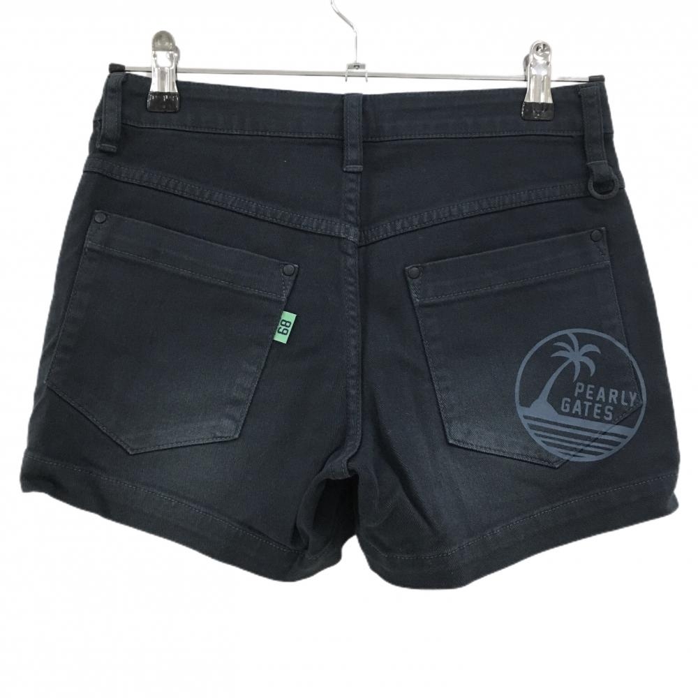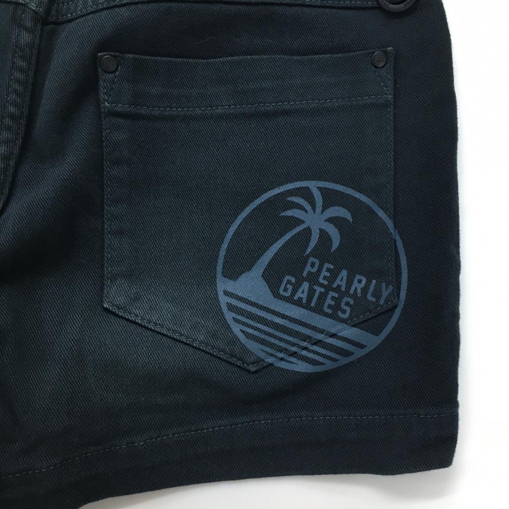 【美品】パーリーゲイツ ショートパンツ 黒×グリーン ダメージ加工 ロゴ刺しゅう レディース 0(S) ゴルフウェア PEARLY GATES
