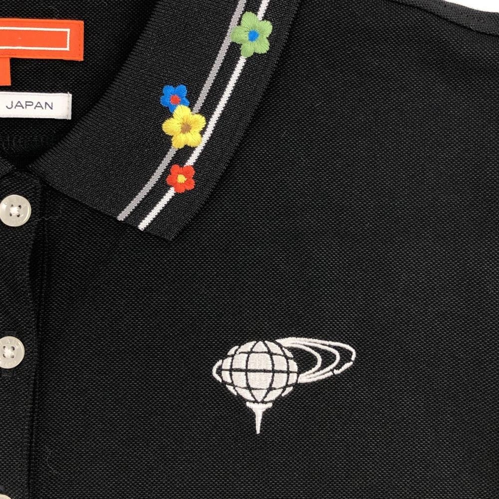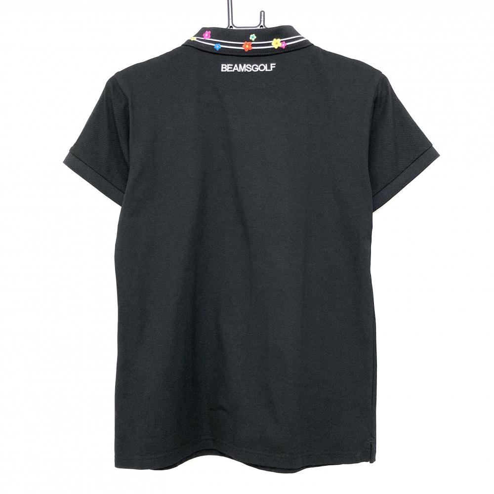 【超美品】ビームスゴルフ 半袖ポロシャツ 黒 襟ライン 花刺しゅう 日本製 レディース L ゴルフウェア BEAMS GOLF