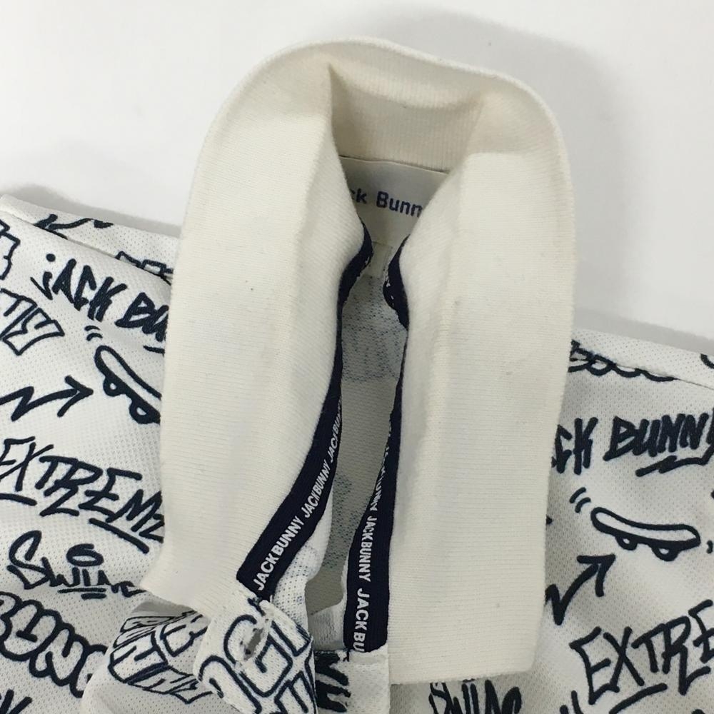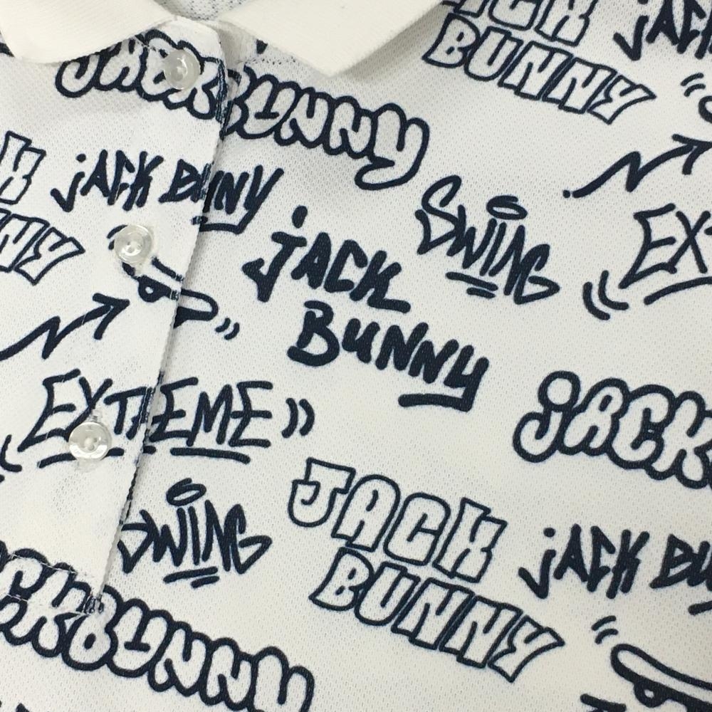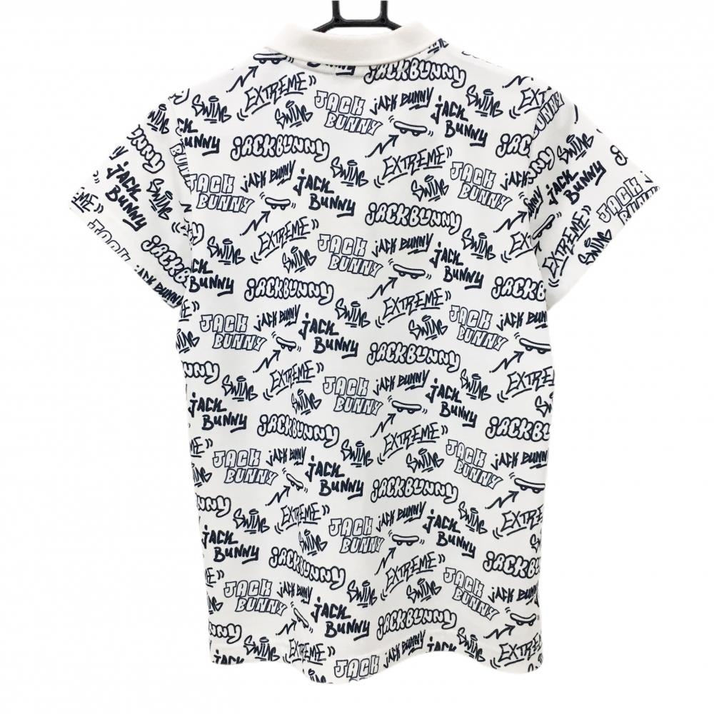 ジャックバニー 半袖ポロシャツ 白×ネイビー 総柄 レディース 2(L) ゴルフウェア Jack Bunny