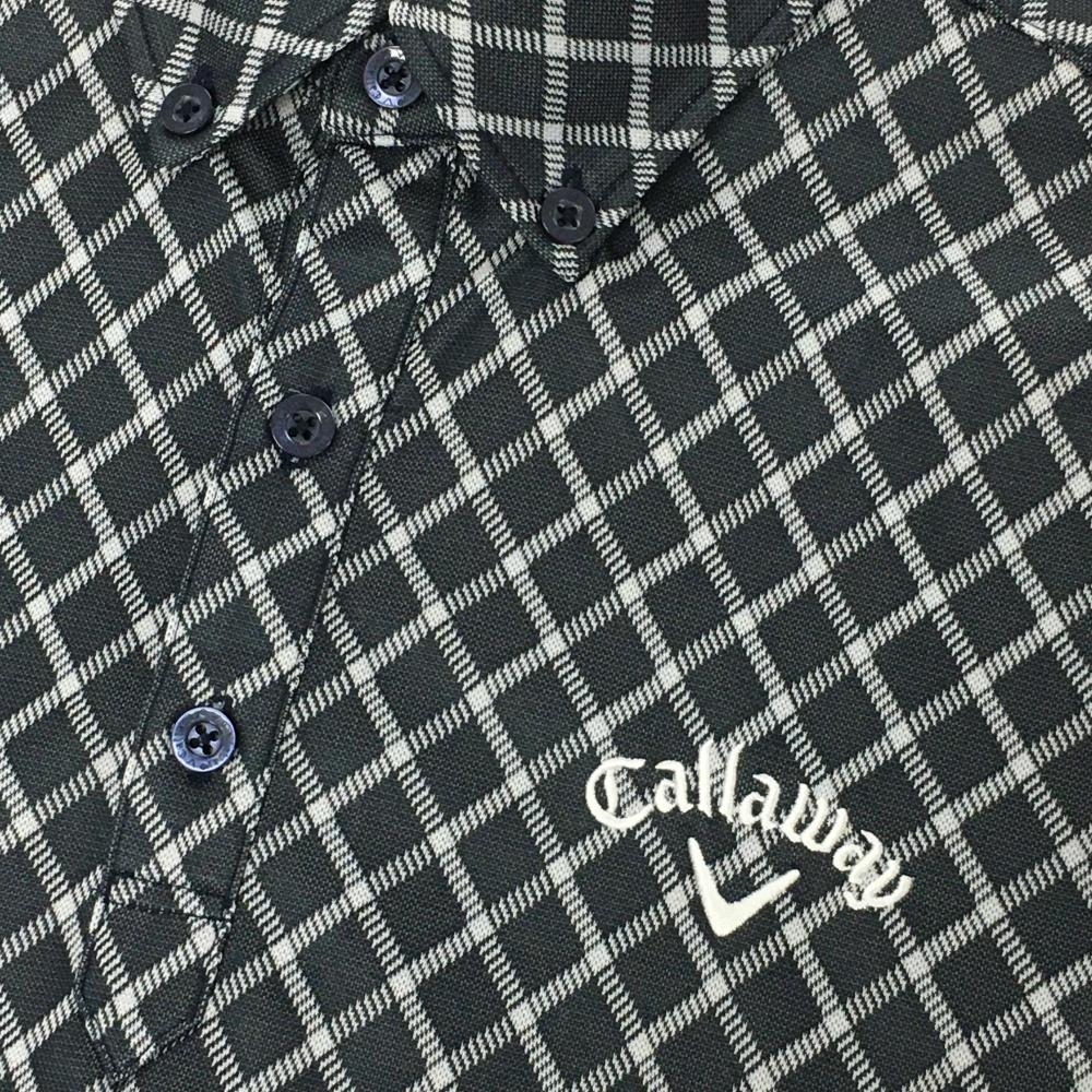 【美品】キャロウェイ 半袖ポロシャツ グレー×白 チェック ボタンダウン メンズ M ゴルフウェア Callaway