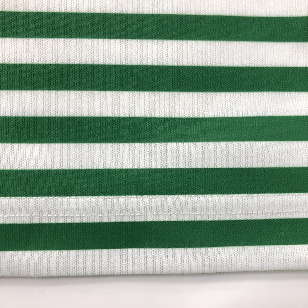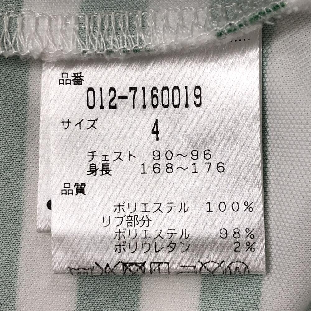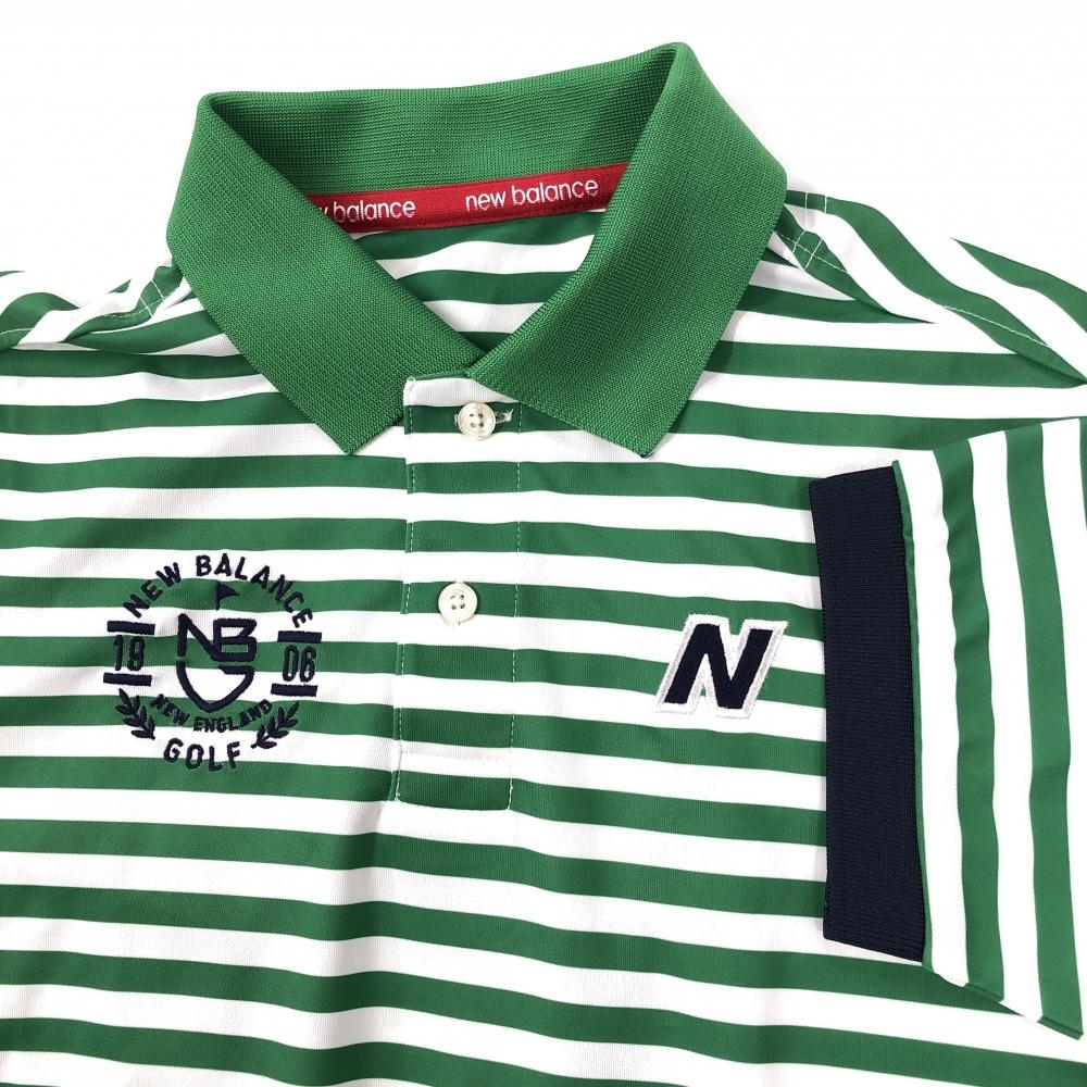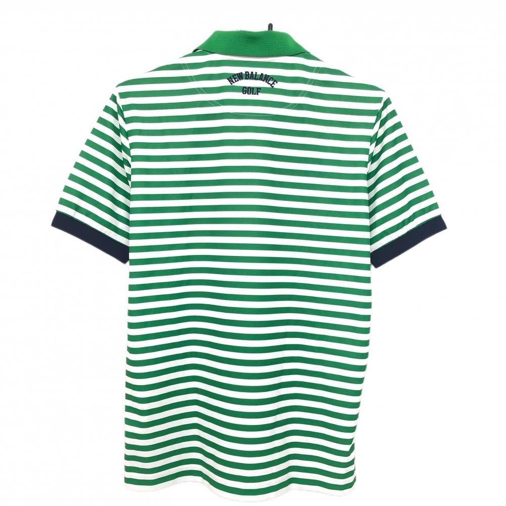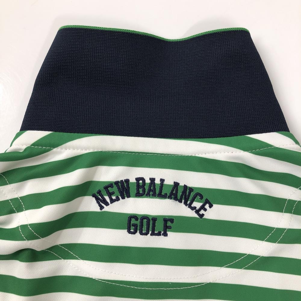 【美品】ニューバランスゴルフ 半袖ポロシャツ グリーン×白 ボーダー 襟裏ネイビー メンズ 4(M) ゴルフウェア New Balance