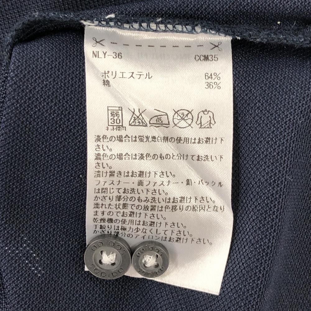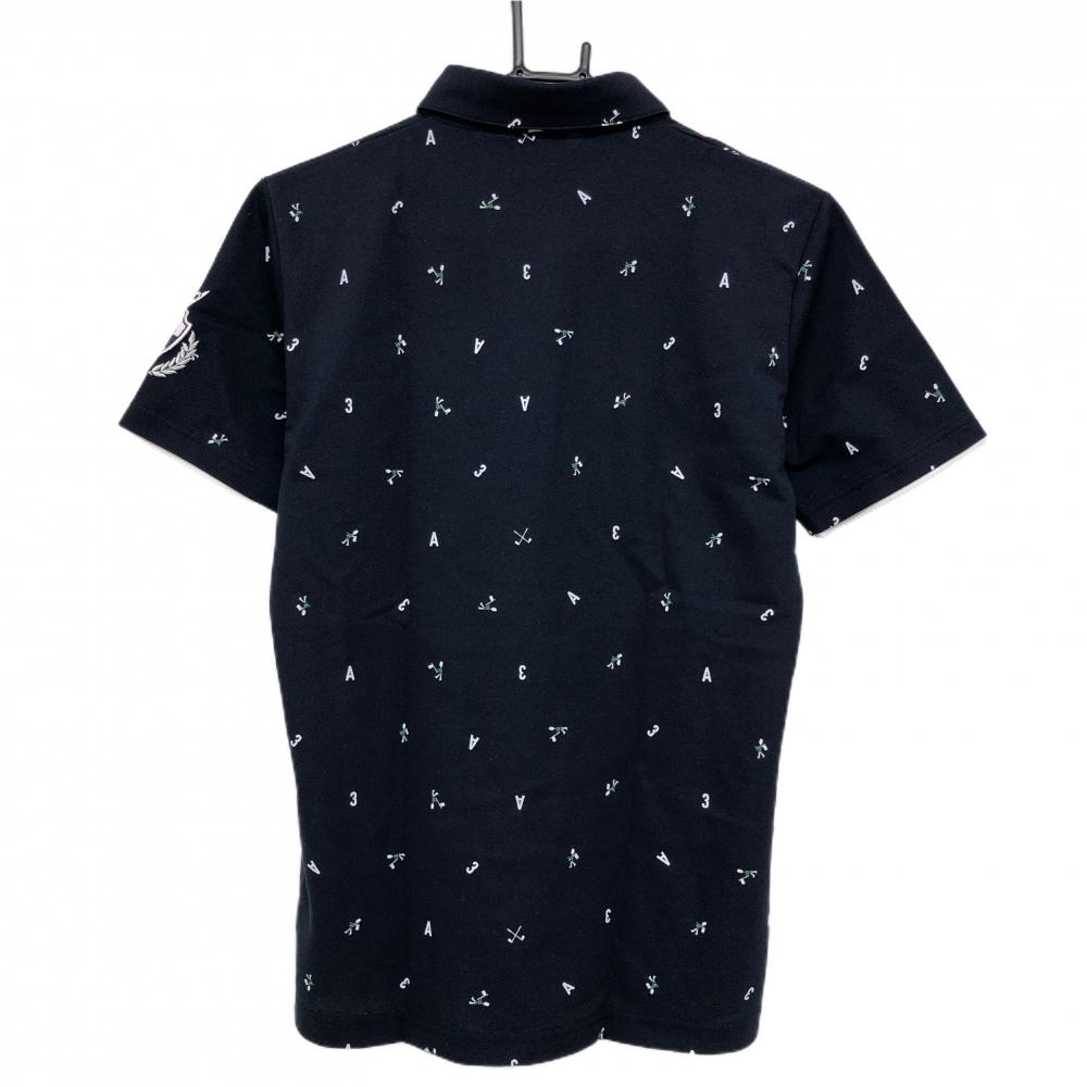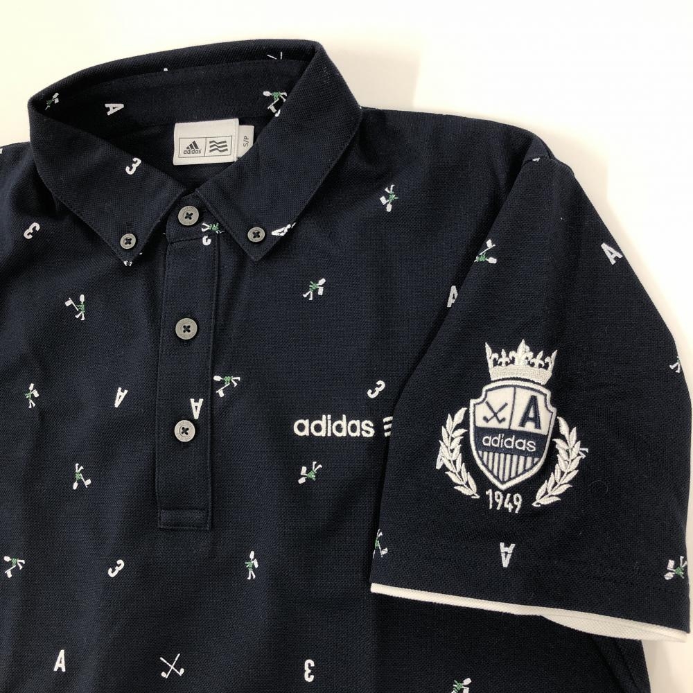 【超美品】アディダス 半袖ポロシャツ ネイビー×白 総柄 英字 数字 ボタンダウン メンズ S/P ゴルフウェア adidas