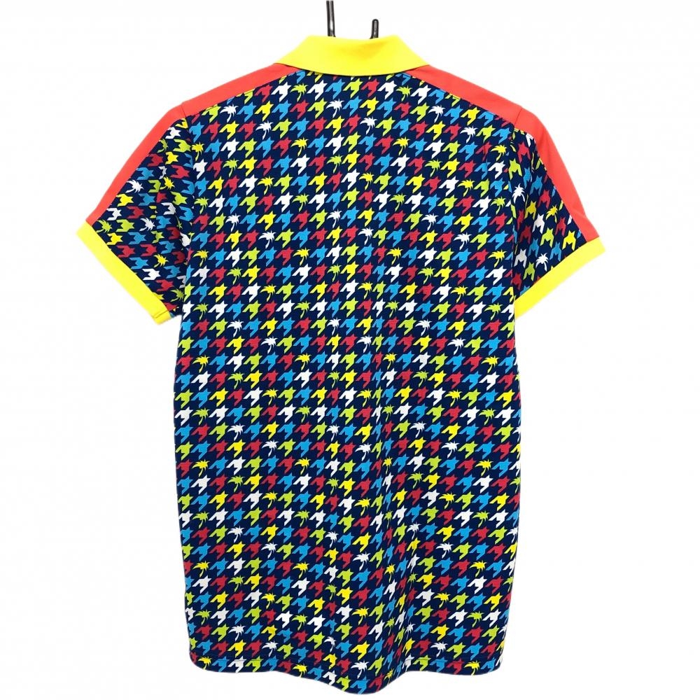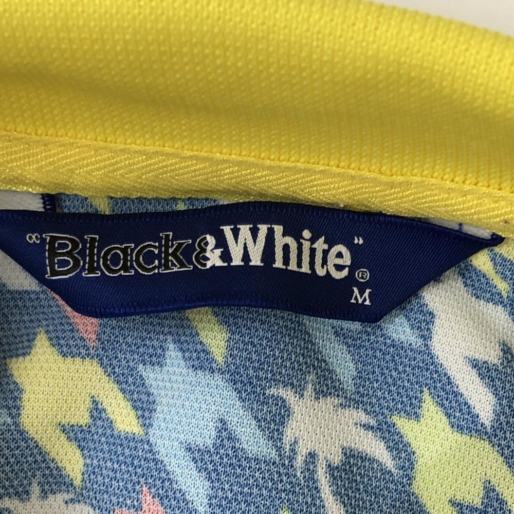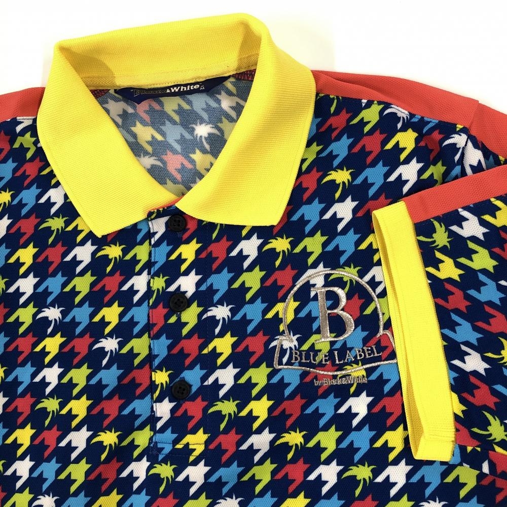 【超美品】ブラックアンドホワイト 半袖ポロシャツ ネイビーブルー系×マルチカラー 千鳥格子 メンズ M ゴルフウェア Black&White
