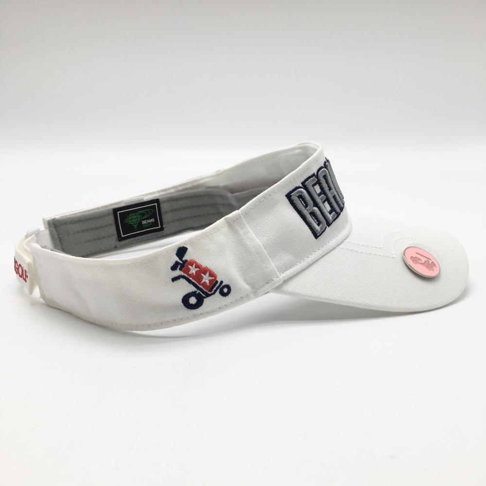 ビームスゴルフ サンバイザー 白×グレー 立体ロゴ刺しゅう マーカー付き ゴルフウェア BEAMS GOLF
