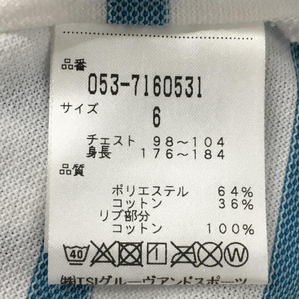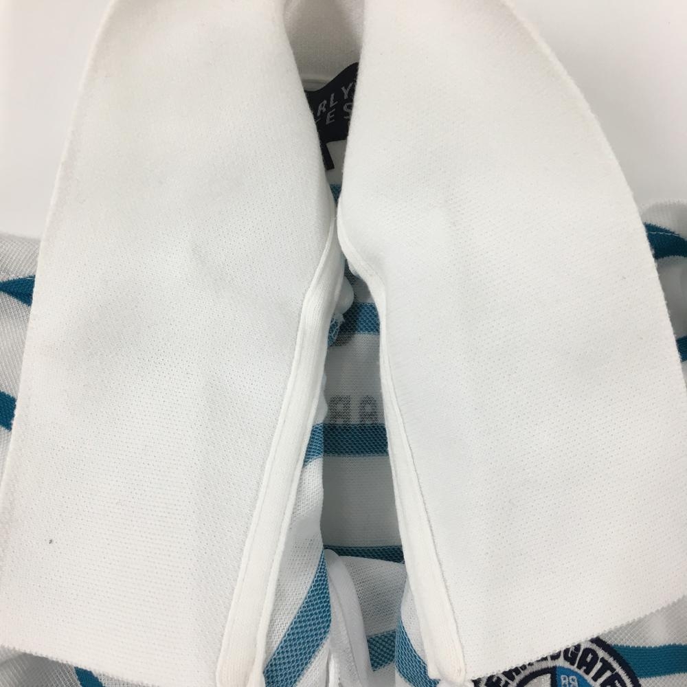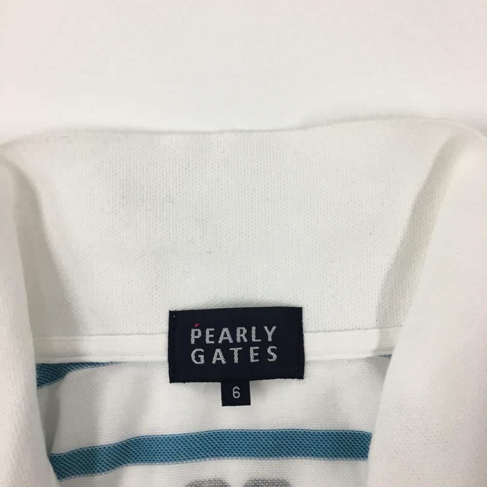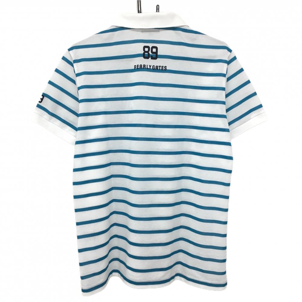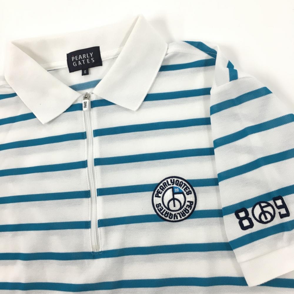 【美品】パーリーゲイツ 半袖ポロシャツ 白×ブルーグリーン ボーダー ハーフジップ メンズ 6(XL) ゴルフウェア PEARLY GATES
