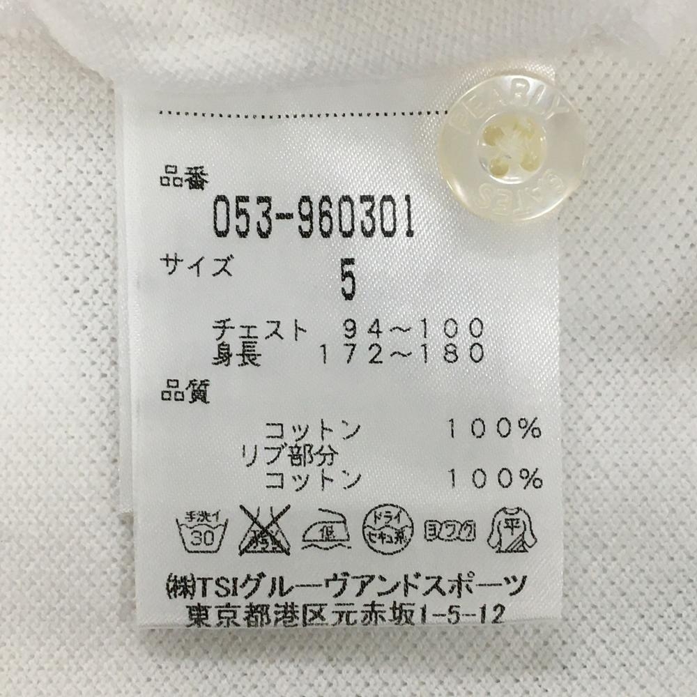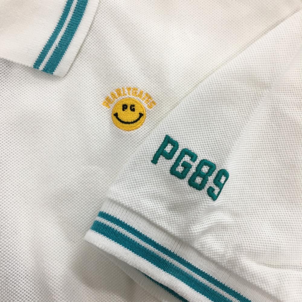 パーリーゲイツ 半袖ポロシャツ 白×ライトブルー ニコちゃん スマイル メンズ 5(L) ゴルフウェア PEARLY GATES